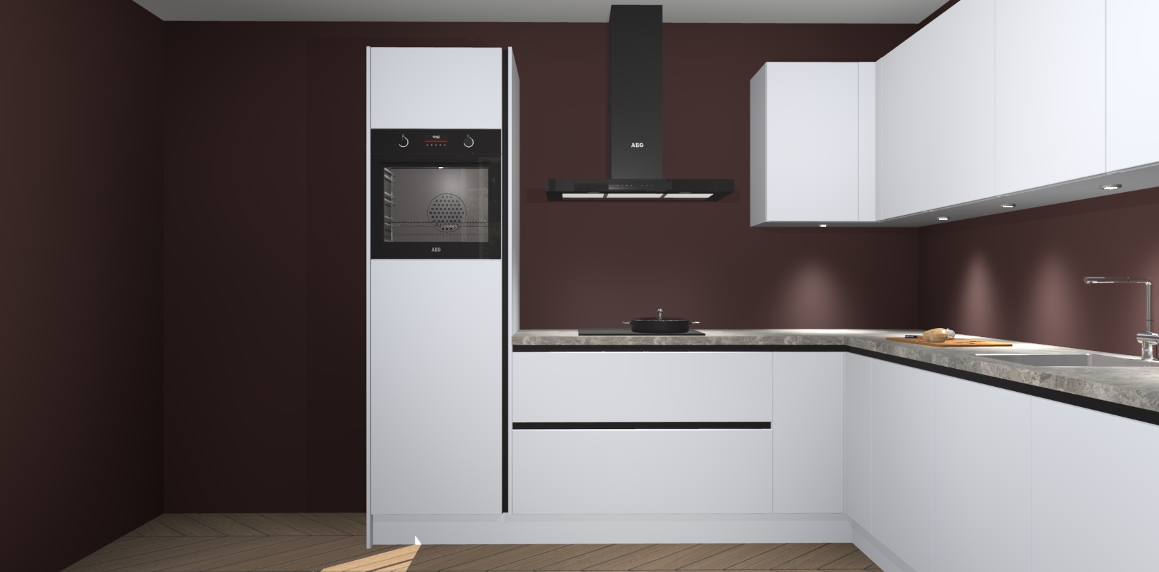 De Sneeuwwitte greeploze keuken Debar is uitgerust met vijf inbouwapparaten die elke kooktaak handig en efficiënt maken. Een oven, inductiekookplaat, afzuigkap, vaatwasser en koelkast zijn standaard, maar kunnen na bestelling eenvoudig worden geupgrade naar AEG. Profiteer vervolgens van de softclose deuren voor snelle toegang en geruisloze toegang.