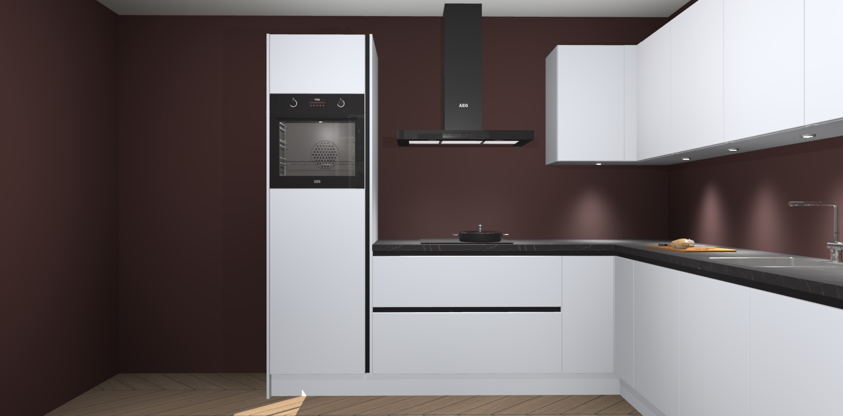 De Sneeuwwitte greeploze keuken Debar is uitgerust met vijf inbouwapparaten die elke kooktaak handig en efficiënt maken. Een oven, inductiekookplaat, afzuigkap, vaatwasser en koelkast zijn standaard, maar kunnen na bestelling eenvoudig worden geupgrade naar AEG. Profiteer vervolgens van de softclose deuren voor snelle toegang en geruisloze toegang.
