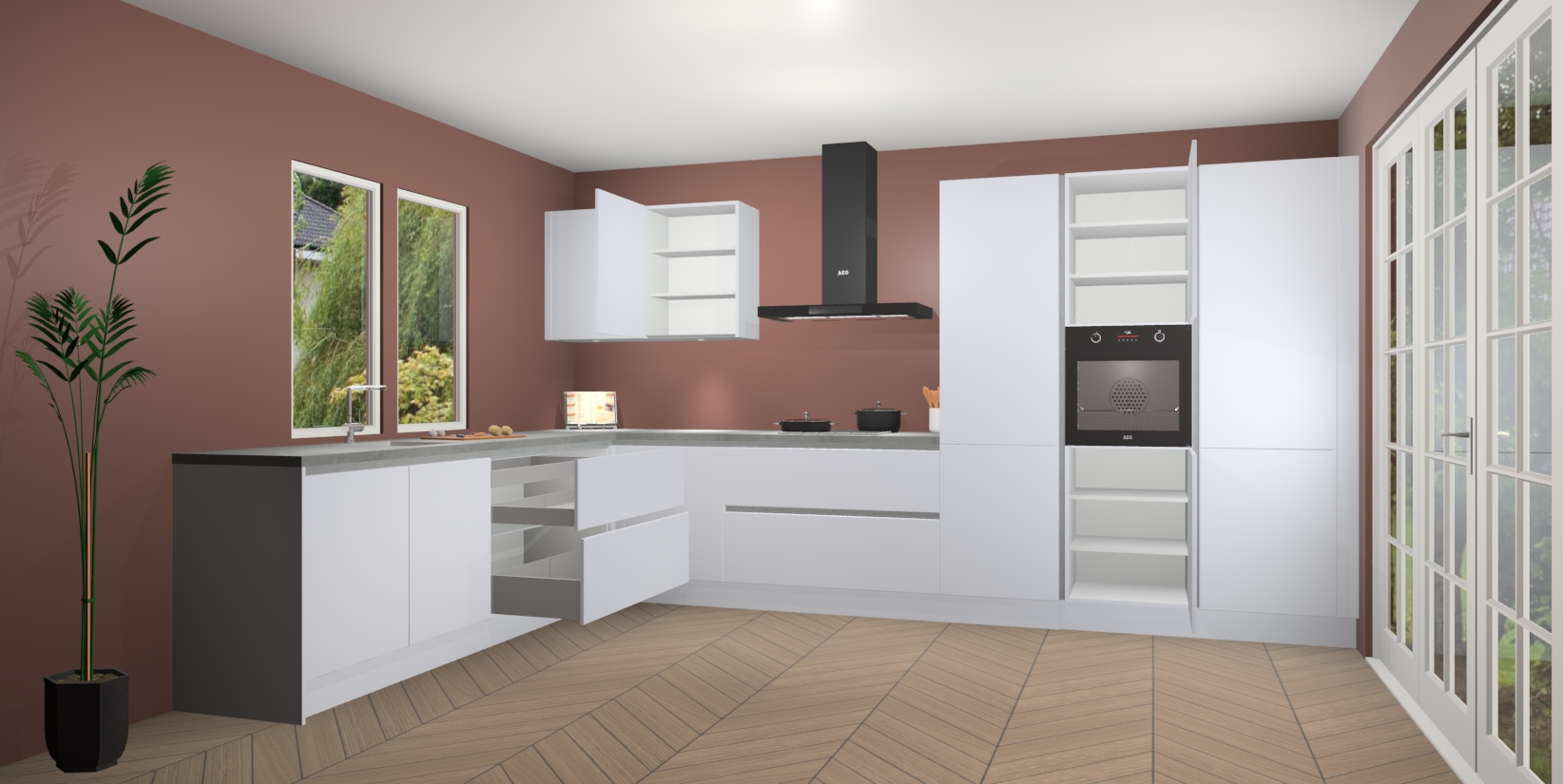 In deze box zijn alle kleuren verzameld van de deuren en werkbladen. Vraag de gratis kleurenbox aan en kijk thuis rustig verder!