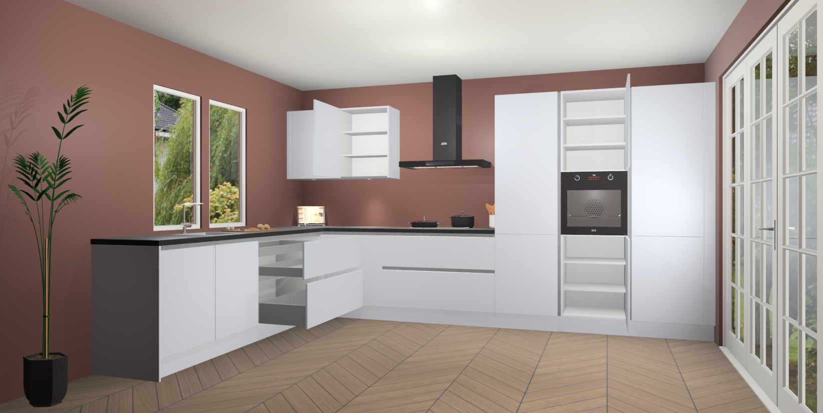 Inclusief plinten, stelpoten en werkblad