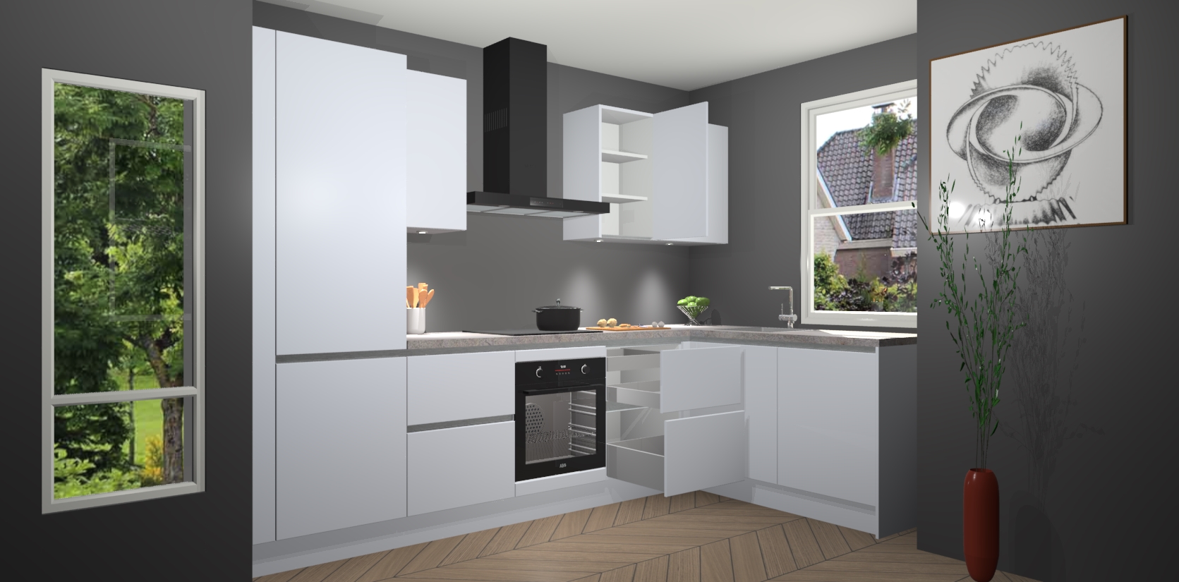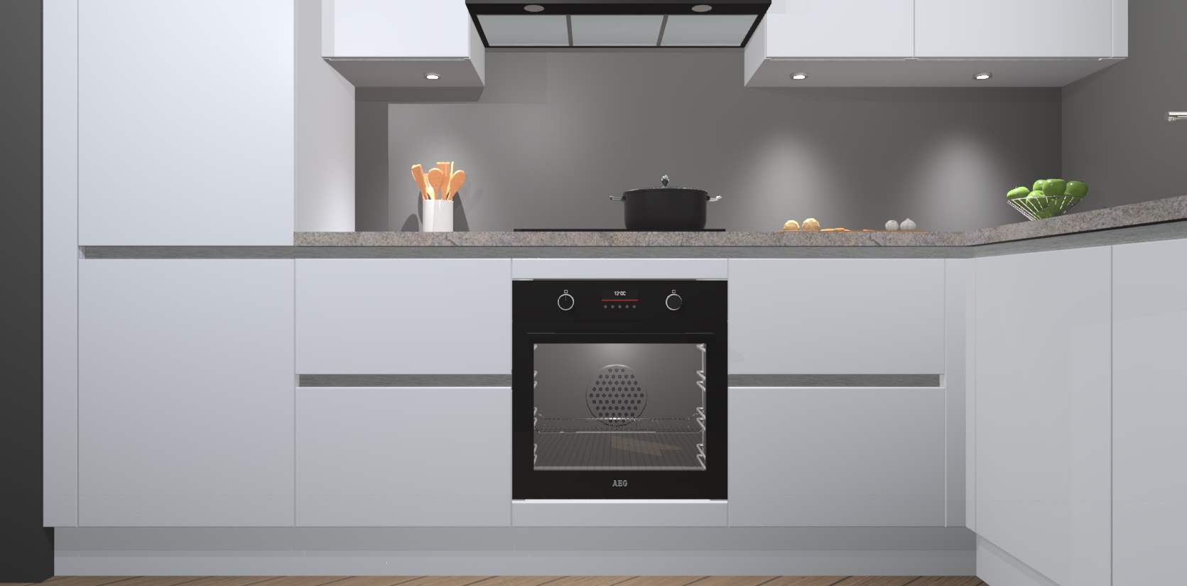 De Sneeuwwitte greeploze keuken Geneve is uitgerust met 5 inbouwapparaten - een oven, inductiekookplaat, afzuigkap, vaatwasser en koelkast - voor al uw kook- en bewaarbehoeftes. U kunt deze apparaten desgewenst eenvoudig upgraden naar AEG of de oven omruilen voor een combimagnetron na het plaatsen van uw bestelling. En met de soft close deuren, voldoende opbergruimte en kasten die voorgemonteerd worden geleverd, bent u in een mum van tijd klaar om heerlijke maaltijden te bereiden!