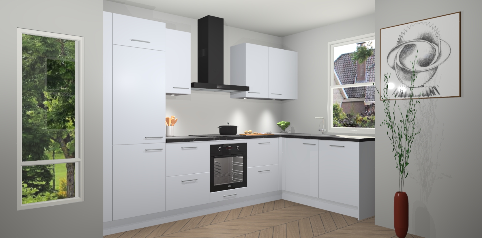 De Sneeuwwitte greeploze keuken Geneve is precies wat u nodig heeft als u op zoek bent naar modern design, versmolten met tijdloze schoonheid. De strakke afwerking voegt klasse toe terwijl het toch een uitnodigende sfeer behoudt; zeker om zowel gasten als uzelf te inspireren om in stijl te gaan koken! En nog beter, het zal uw budget niet breken - dus waarom wachten? Met de Sneeuwwitte greeploze keuken Geneve bent u verzekerd van kwaliteit zonder in te leveren op de prijs!
