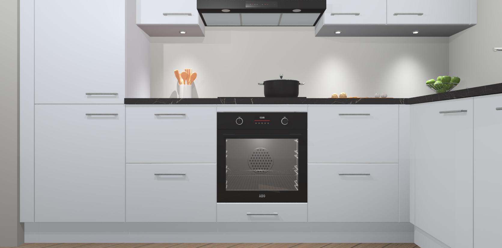 De Sneeuwwitte greeploze keuken Geneve is uitgerust met 5 inbouwapparaten - een oven, inductiekookplaat, afzuigkap, vaatwasser en koelkast - voor al uw kook- en bewaarbehoeftes. U kunt deze apparaten desgewenst eenvoudig upgraden naar AEG of de oven omruilen voor een combimagnetron na het plaatsen van uw bestelling. En met de soft close deuren, voldoende opbergruimte en kasten die voorgemonteerd worden geleverd, bent u in een mum van tijd klaar om heerlijke maaltijden te bereiden!