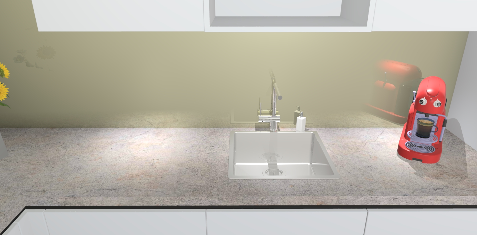 - De spoelbak is nog niet in gevreesd. Dit dient tijdens het werk gedaan te worden