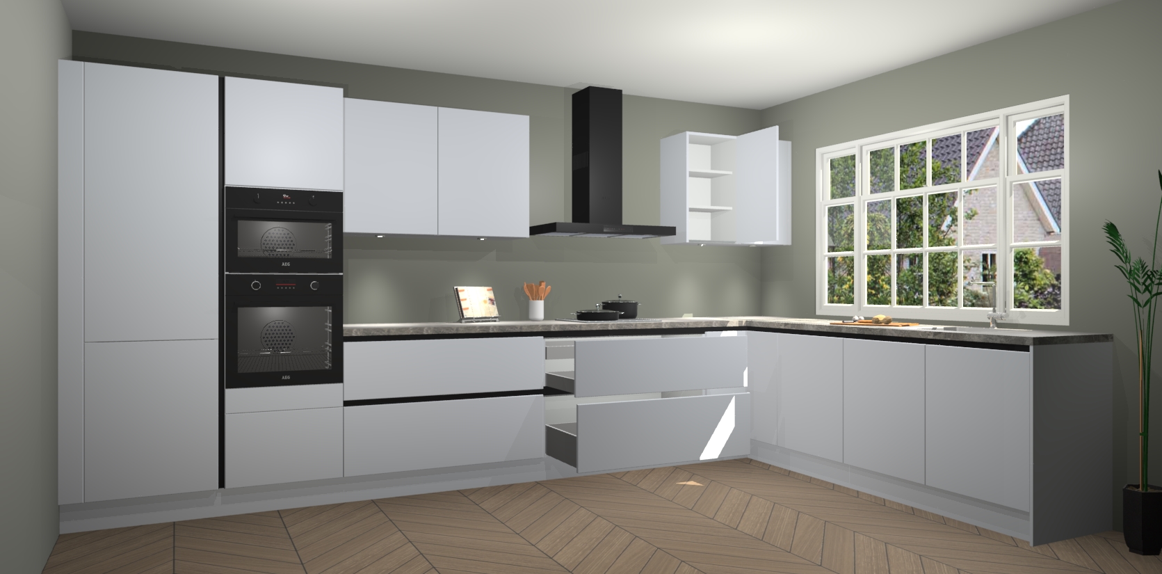 Inclusief plinten, stelpoten en werkblad