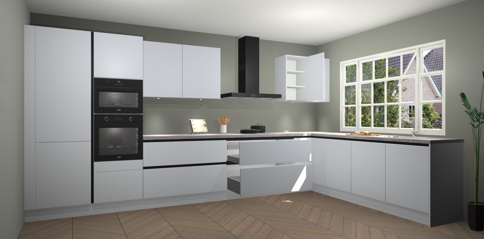 Inclusief plinten, stelpoten en werkblad
