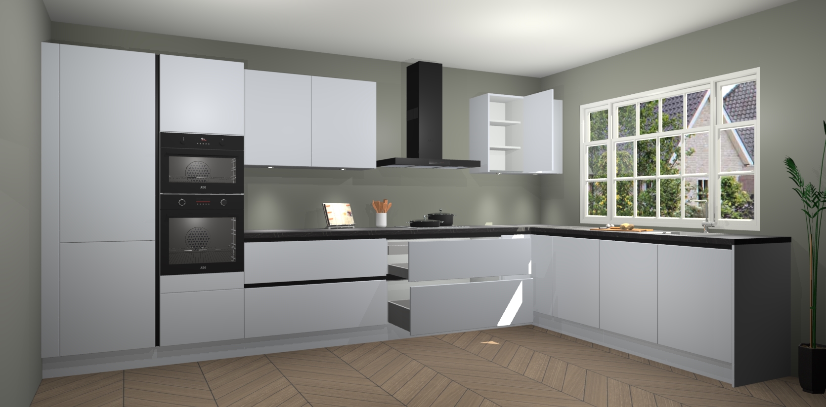 Inclusief plinten, stelpoten en werkblad