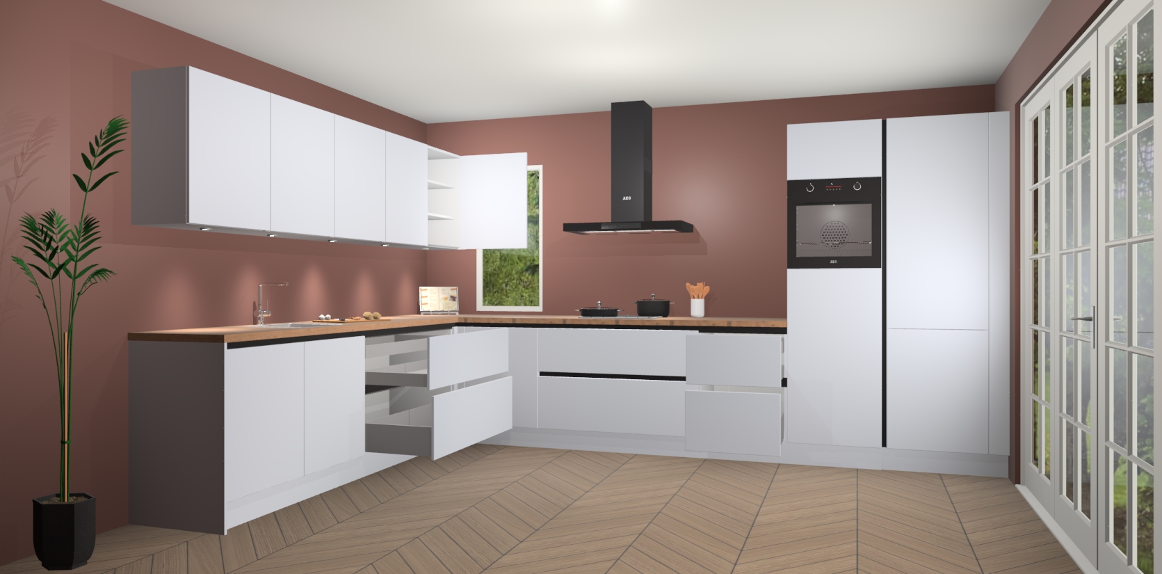 Heeft u nog apparatuur nodig? Geen probleem: de sneeuwwitte greeploze keuken Harare bevat vijf ingebouwde apparaten - een oven, inductiekookplaat, afzuigkap, vaatwasser en koelkast - die gemakkelijk kunnen worden bijgewerkt naar AEG na bestelling. En als dat nog niet genoeg is; onze kasten worden pre-geassembleerd geleverd en zijn verkrijgbaar tegen een vastgeroeste lage prijs! U hoeft nooit meer te zoeken naar goede kwaliteit en service want onze producten hebben echt Duitse kwaliteit.