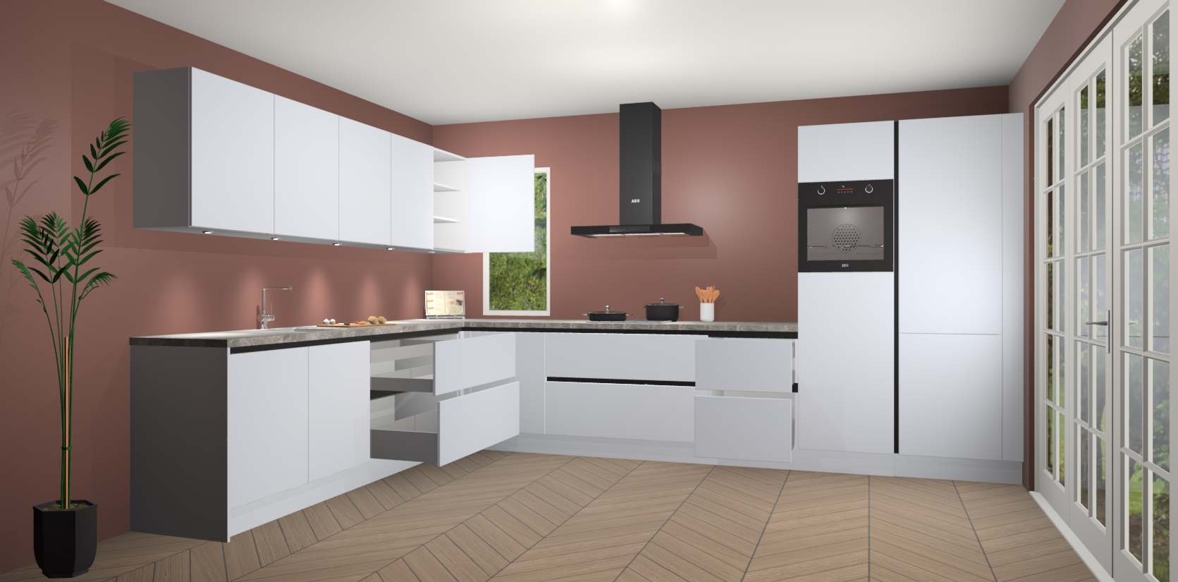 Inclusief plinten, stelpoten en werkblad