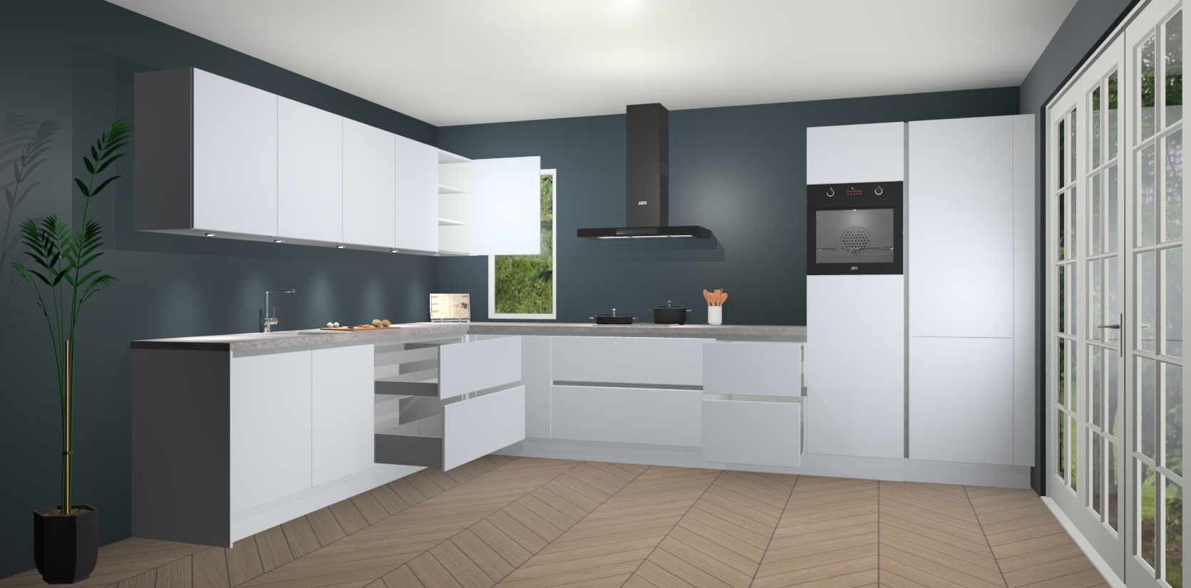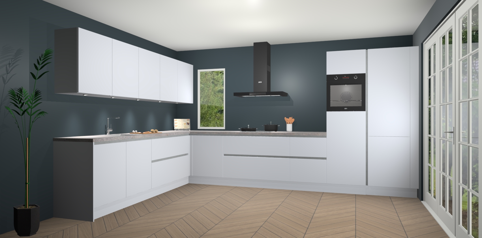 Heeft u nog apparatuur nodig? Geen probleem: de sneeuwwitte greeploze keuken Harare bevat vijf ingebouwde apparaten - een oven, inductiekookplaat, afzuigkap, vaatwasser en koelkast - die gemakkelijk kunnen worden bijgewerkt naar AEG na bestelling. En als dat nog niet genoeg is; onze kasten worden pre-geassembleerd geleverd en zijn verkrijgbaar tegen een vastgeroeste lage prijs! U hoeft nooit meer te zoeken naar goede kwaliteit en service want onze producten hebben echt Duitse kwaliteit.