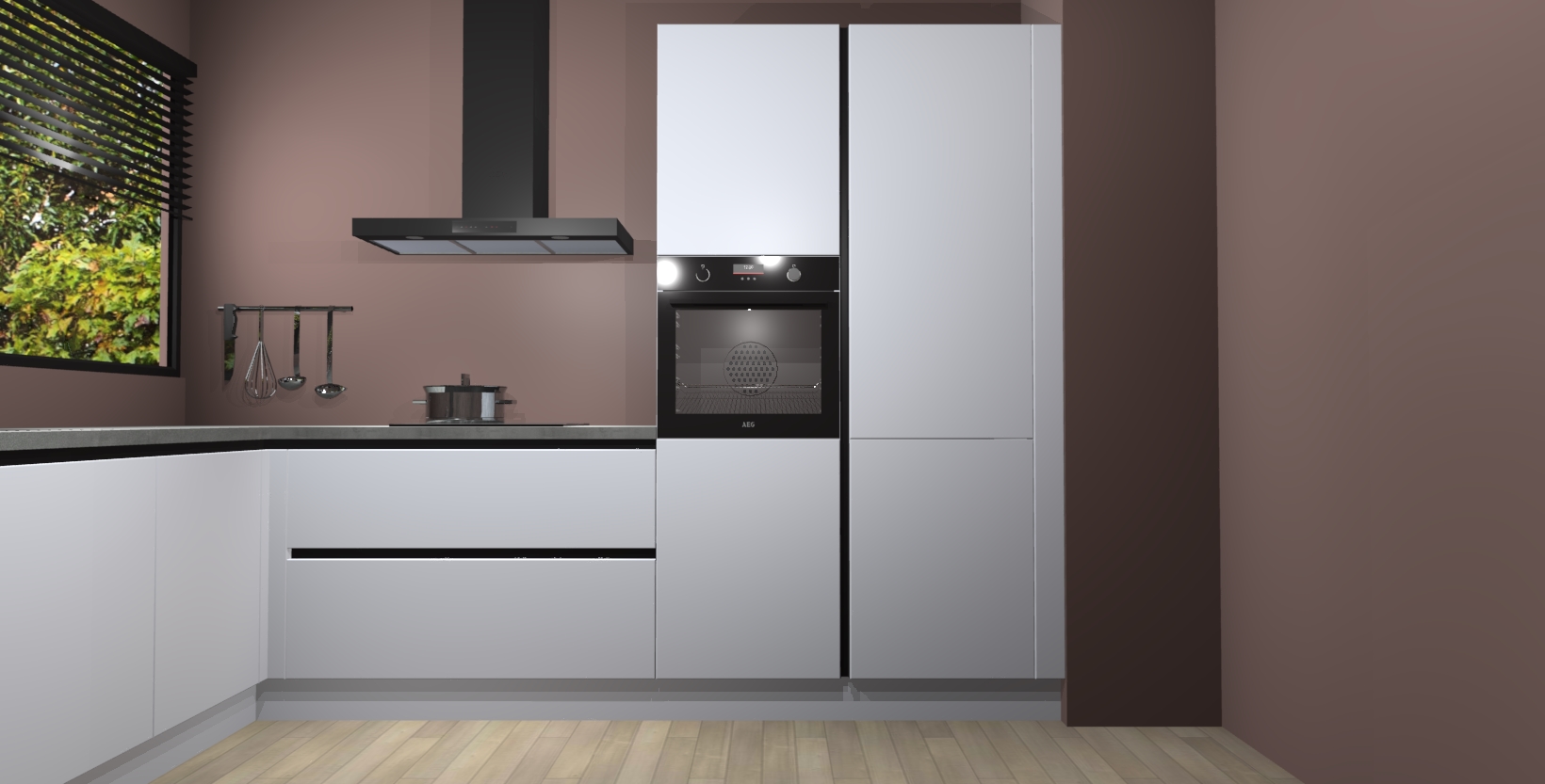 Met een modern, tijdloos design en ruime opslagruimte, zult u zich in no-time thuis voelen in uw nieuwe keuken. Uw leven wordt eenvoudiger met de soft-close deuren die voor het ultieme stille comfort zorgen - geen geluid dat u stoort terwijl u kookt. Ook is de keuken voorzien van 5 ingebouwde apparaten: een oven, inductie kookplaat, afzuigkap, vaatwasser en koelkast. Deze kunnen gemakkelijk na bestelling worden bijgewerkt naar AEG - waardoor uw luxe ervaring compleet is.