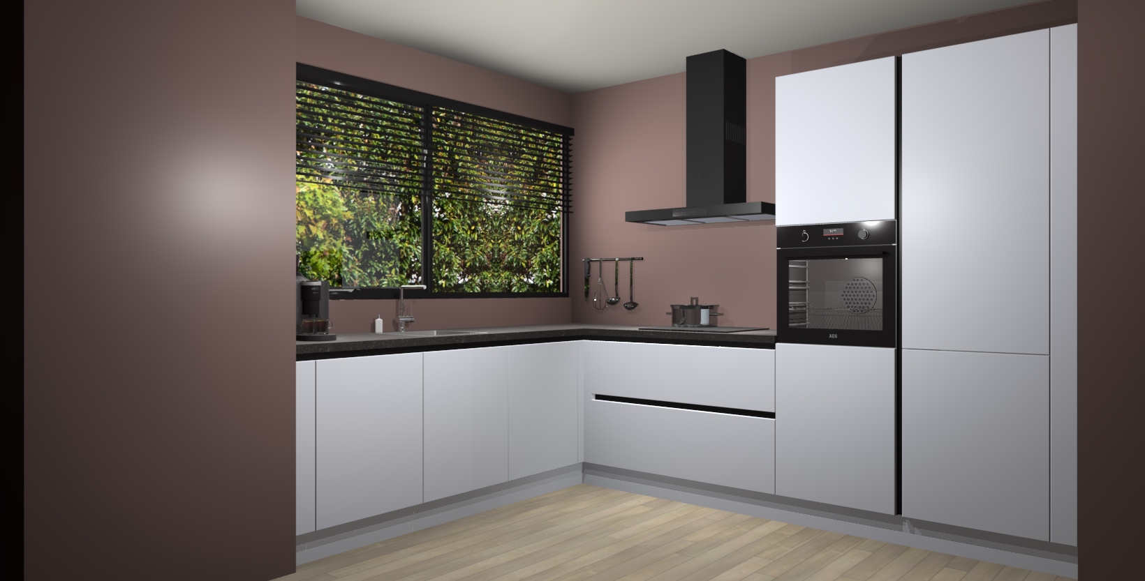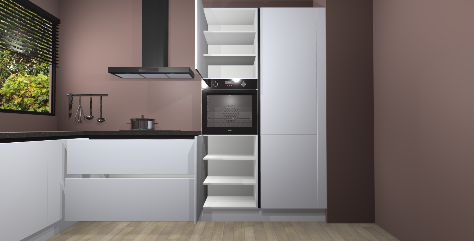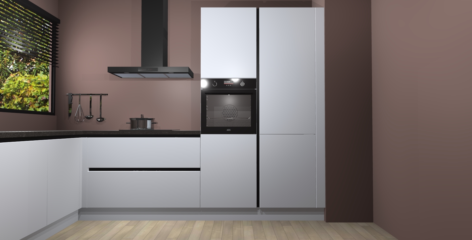 Met een modern, tijdloos design en ruime opslagruimte, zult u zich in no-time thuis voelen in uw nieuwe keuken. Uw leven wordt eenvoudiger met de soft-close deuren die voor het ultieme stille comfort zorgen - geen geluid dat u stoort terwijl u kookt. Ook is de keuken voorzien van 5 ingebouwde apparaten: een oven, inductie kookplaat, afzuigkap, vaatwasser en koelkast. Deze kunnen gemakkelijk na bestelling worden bijgewerkt naar AEG - waardoor uw luxe ervaring compleet is.