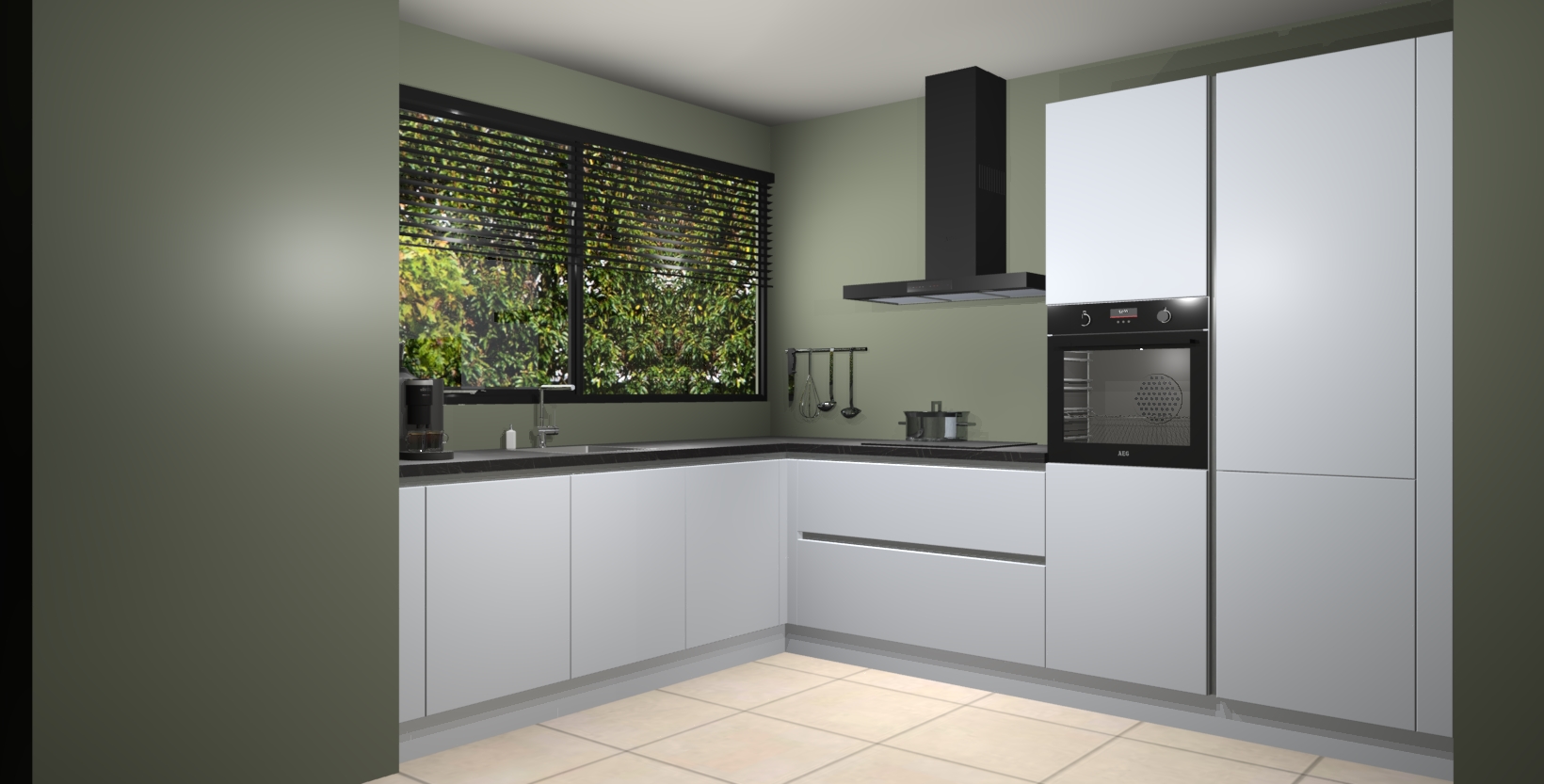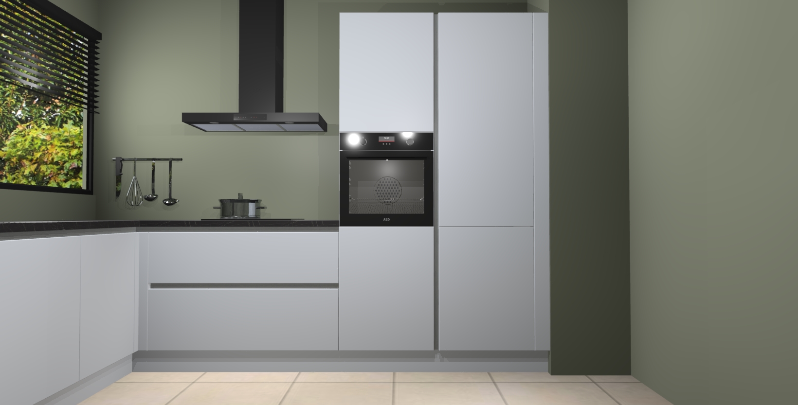 Met een modern, tijdloos design en ruime opslagruimte, zult u zich in no-time thuis voelen in uw nieuwe keuken. Uw leven wordt eenvoudiger met de soft-close deuren die voor het ultieme stille comfort zorgen - geen geluid dat u stoort terwijl u kookt. Ook is de keuken voorzien van 5 ingebouwde apparaten: een oven, inductie kookplaat, afzuigkap, vaatwasser en koelkast. Deze kunnen gemakkelijk na bestelling worden bijgewerkt naar AEG - waardoor uw luxe ervaring compleet is.