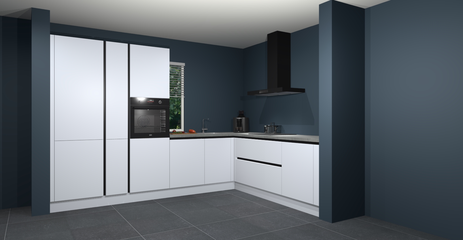Met een modern, tijdloos design en ruime opslagruimte, zult u zich in no-time thuis voelen in uw nieuwe keuken. Uw leven wordt eenvoudiger met de soft-close deuren die voor het ultieme stille comfort zorgen - geen geluid dat u stoort terwijl u kookt. Ook is de keuken voorzien van 5 ingebouwde apparaten: een oven, inductie kookplaat, afzuigkap, vaatwasser en koelkast. Deze kunnen gemakkelijk na bestelling worden bijgewerkt naar AEG - waardoor uw luxe ervaring compleet is.