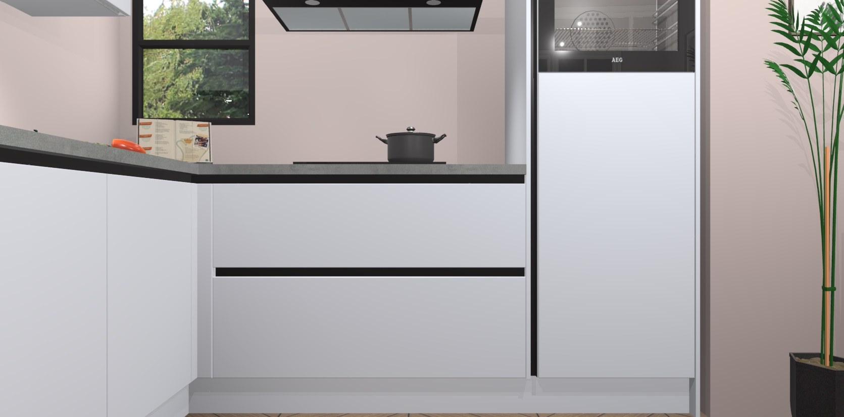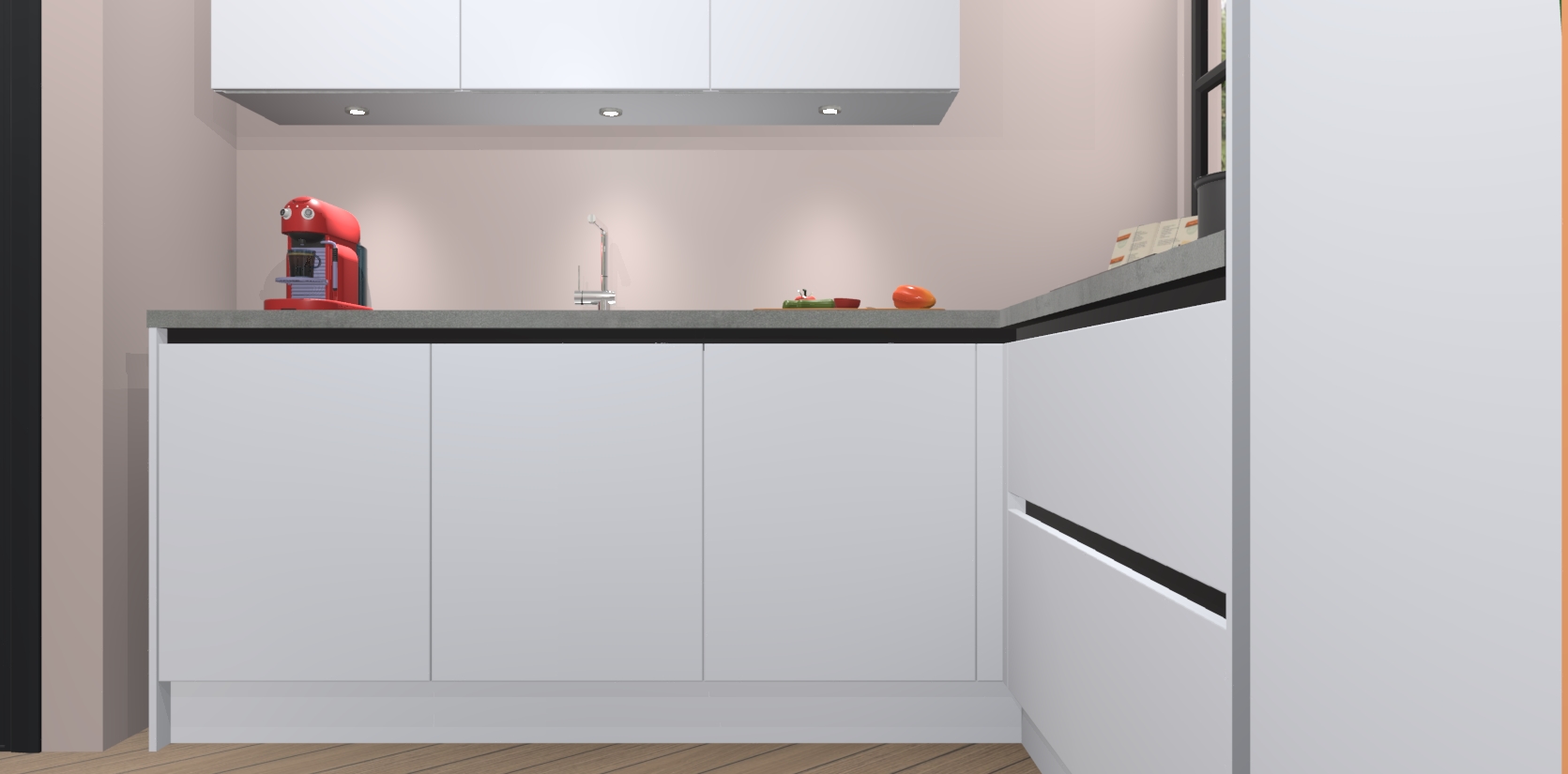 Inclusief plinten, stelpoten en werkblad