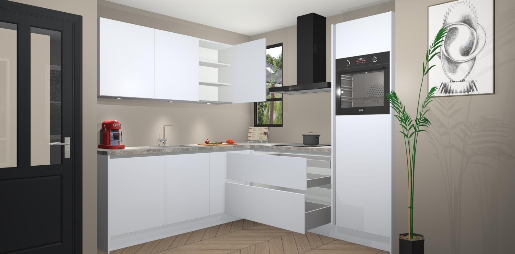 Als extra werd de prijs zo laag mogelijk vastgesteld, zonder aan de kwaliteit te raken. Zo heb je gegarandeerde Duitse keukenkwaliteit waarmee je jarenlang plezier beleeft aan het ontwerp. En dat alles wordt gecombineerd met een supersnelle service van maar liefst 7 weken!