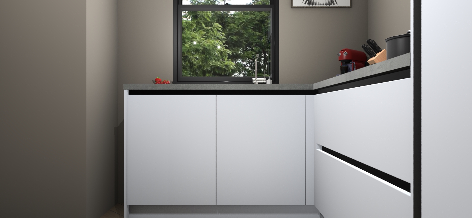Moedige modernisten! De sneeuwwitte greeploze keuken Kinshasa is het perfecte antwoord op al uw keukendromen. Dit geraffineerde, tijdloze ontwerp combineert strakke kasten met hoogglans details zodat u die dure look krijgt zonder het dure prijskaartje. We weten dat planning en uitvoering de sleutels zijn tot een geslaagde keukenrenovatie, dus hebben we ervoor gezorgd dat we vijf inbouwapparaten in ons pakket hebben: een oven, inductiekookplaat, afzuigkap, vaatwasser en koelkast. Deze kunnen na bestelling gemakkelijk worden uitgebreid voor nog meer gemak.