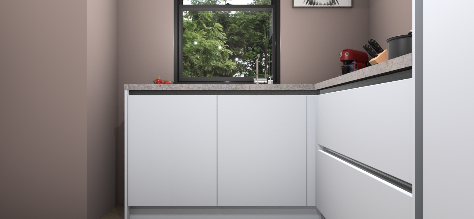 Moedige modernisten! De sneeuwwitte greeploze keuken Kinshasa is het perfecte antwoord op al uw keukendromen. Dit geraffineerde, tijdloze ontwerp combineert strakke kasten met hoogglans details zodat u die dure look krijgt zonder het dure prijskaartje. We weten dat planning en uitvoering de sleutels zijn tot een geslaagde keukenrenovatie, dus hebben we ervoor gezorgd dat we vijf inbouwapparaten in ons pakket hebben: een oven, inductiekookplaat, afzuigkap, vaatwasser en koelkast. Deze kunnen na bestelling gemakkelijk worden uitgebreid voor nog meer gemak.