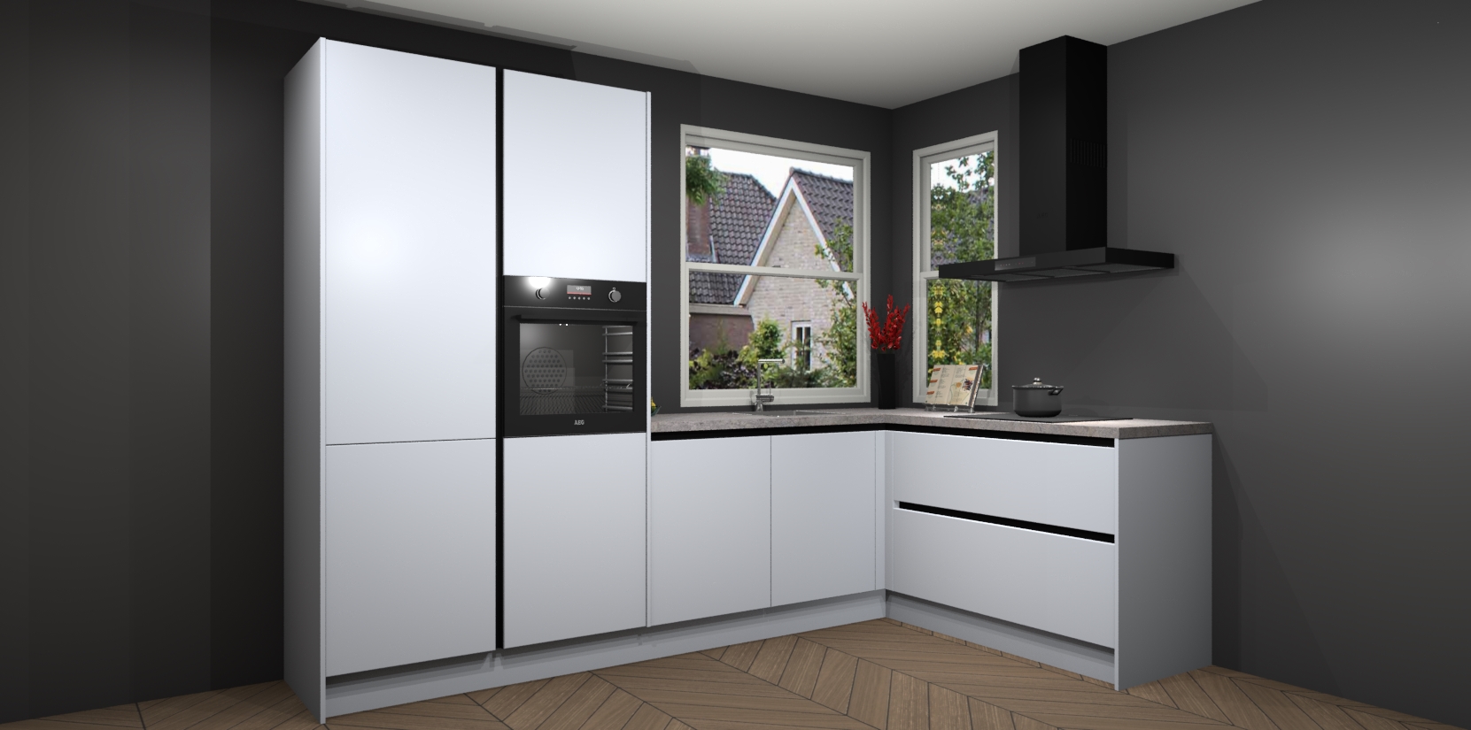 De Sneeuwwitte greeploze keuken Kotor wordt geleverd met vijf inbouwapparaten, waaronder een oven, inductiekookplaat, afzuigkap, vaatwasser en koelkast. En als u uw apparatuur wilt upgraden, kunnen we u na bestelling eenvoudig helpen overstappen naar AEG. Bovendien heeft deze keuken soft close deuren, zodat lades en kastjes geruisloos en zonder klepperen sluiten!