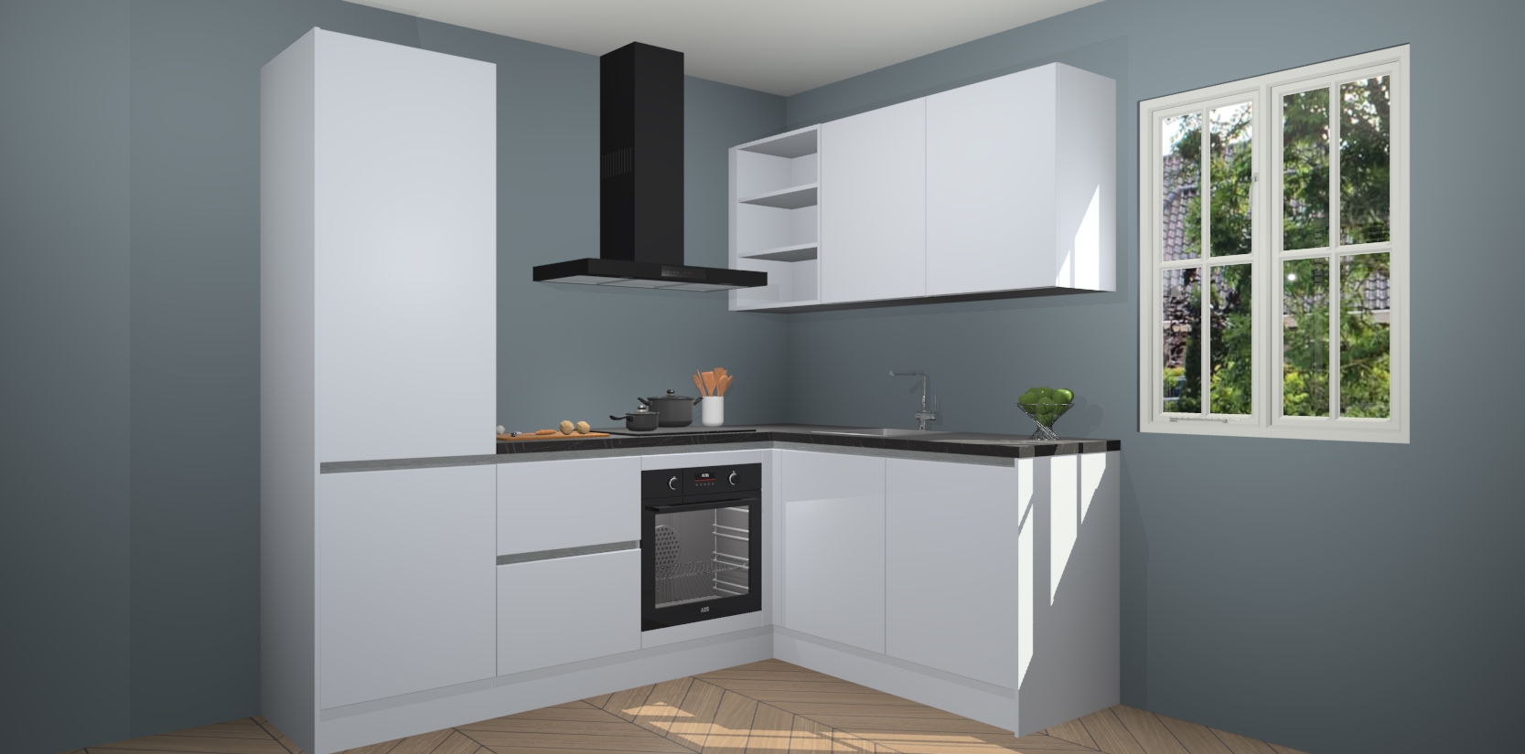 Inclusief plinten, stelpoten en werkblad