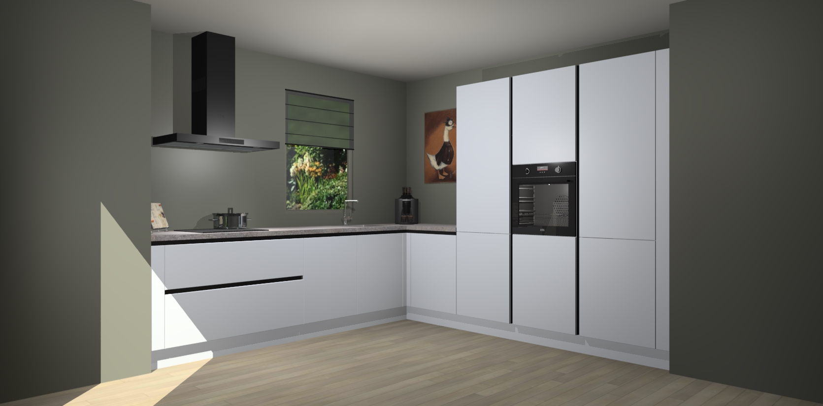 Welkom bij de Sneeuwwitte greeploze keuken Laos. Deze prachtige keuken zal de komende jaren het middelpunt van de belangstelling in uw huis zijn. Uitgerust met vijf inbouwapparaten komt u nooit kookgereedschap tekort. Bovendien geeft de warme houtlook elke ruimte een uitnodigende en tijdloze uitstraling.