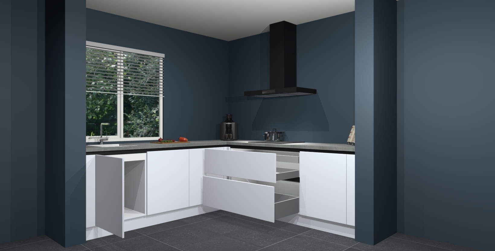 Hoekonderkast met le-mans systeem