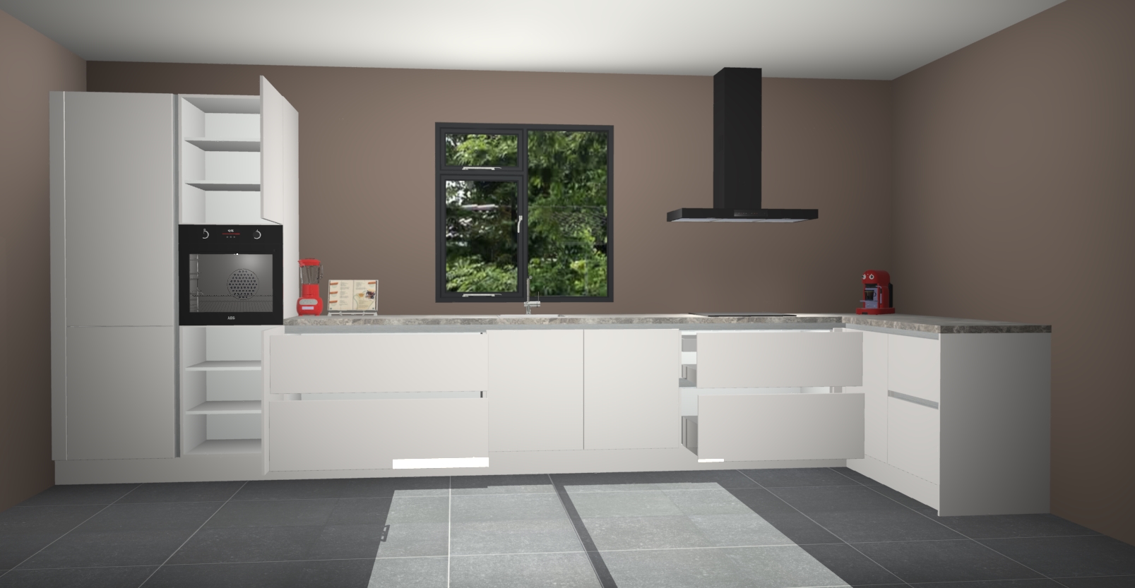 In deze box zijn alle kleuren verzameld van de deuren en werkbladen. Vraag de gratis kleurenbox aan en kijk thuis rustig verder!