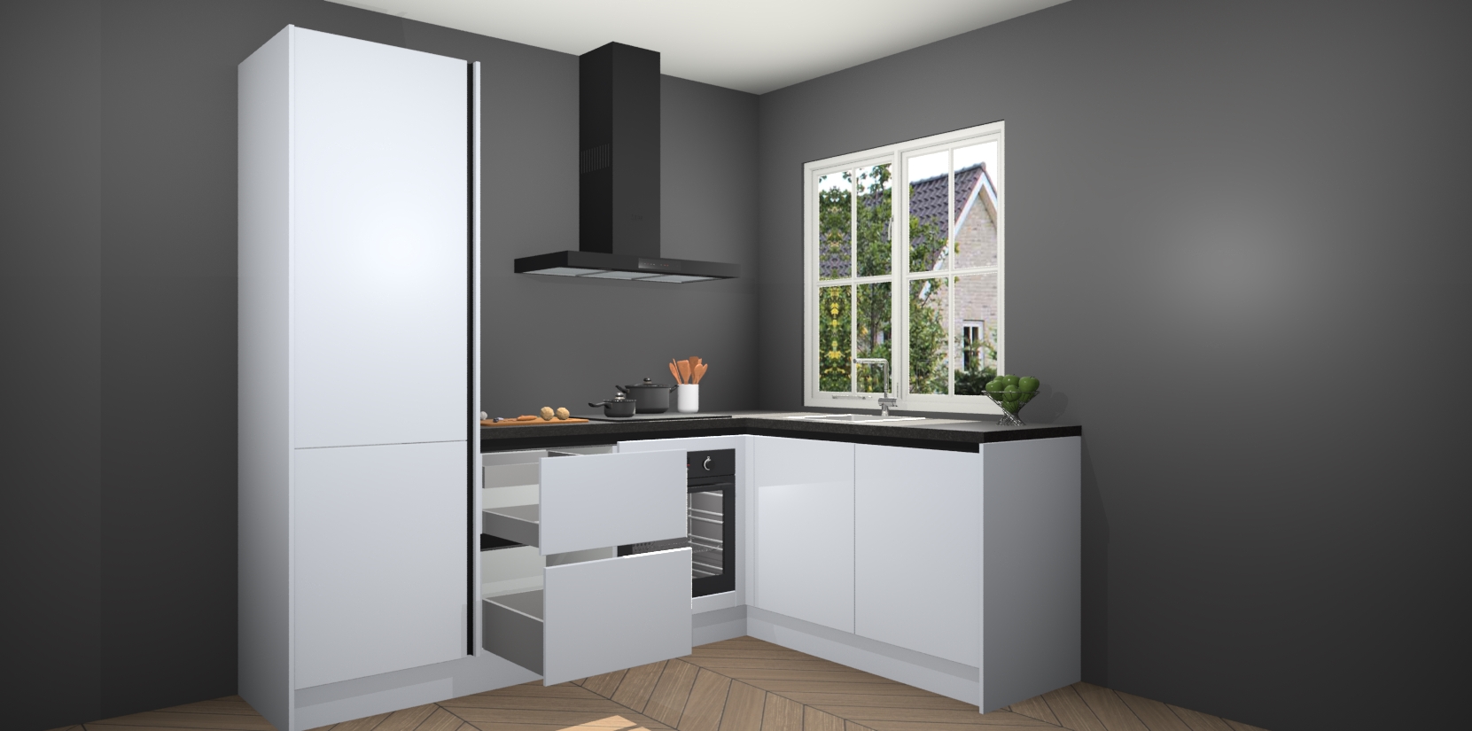 De Sneeuwwitte greeploze keuken Linz is de perfecte keuze voor uw nieuwe moderne en tijdloze keuken. Ga voor moderne en tijdloze elegantie in uw keuken. De prachtige hoekkeuken biedt een verfrissende kijk op de manier waarop we ons vertrouwde keukenontwerp kunnen aanpassen in een nieuwe stijl. Één blik om alles te zien: zo mooi dat het bijna magisch lijkt.