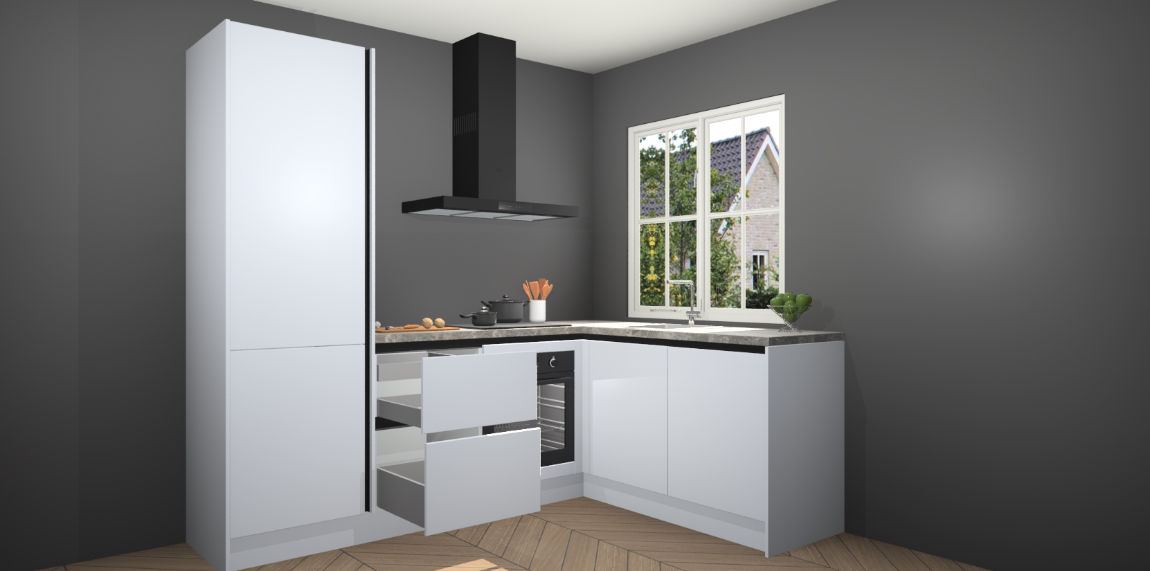 De Sneeuwwitte greeploze keuken Linz is de perfecte keuze voor uw nieuwe moderne en tijdloze keuken. Ga voor moderne en tijdloze elegantie in uw keuken. De prachtige hoekkeuken biedt een verfrissende kijk op de manier waarop we ons vertrouwde keukenontwerp kunnen aanpassen in een nieuwe stijl. Één blik om alles te zien: zo mooi dat het bijna magisch lijkt.