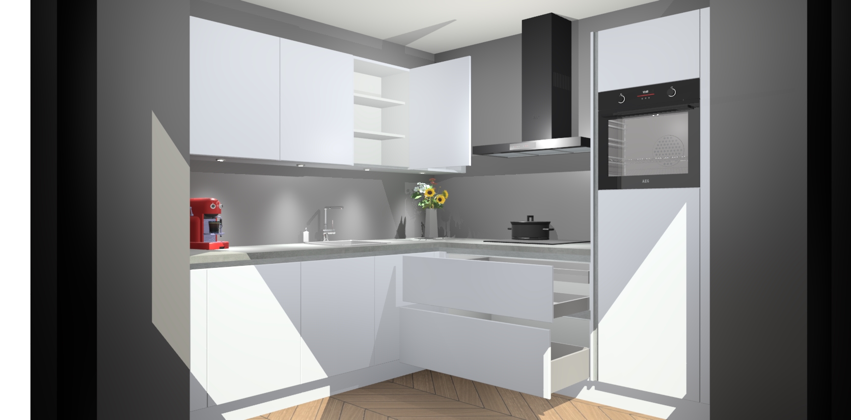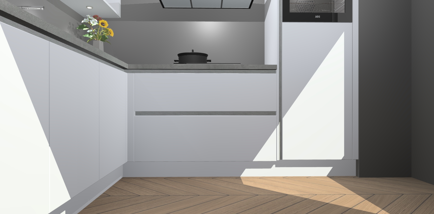 Met een modern, tijdloos design en ruime opslagruimte, zult u zich in no-time thuis voelen in uw nieuwe keuken. Uw leven wordt eenvoudiger met de soft-close deuren die voor het ultieme stille comfort zorgen - geen geluid dat u stoort terwijl u kookt. Ook is de keuken voorzien van 5 ingebouwde apparaten: een oven, inductie kookplaat, afzuigkap, vaatwasser en koelkast. Deze kunnen gemakkelijk na bestelling worden bijgewerkt naar AEG - waardoor uw luxe ervaring compleet is.