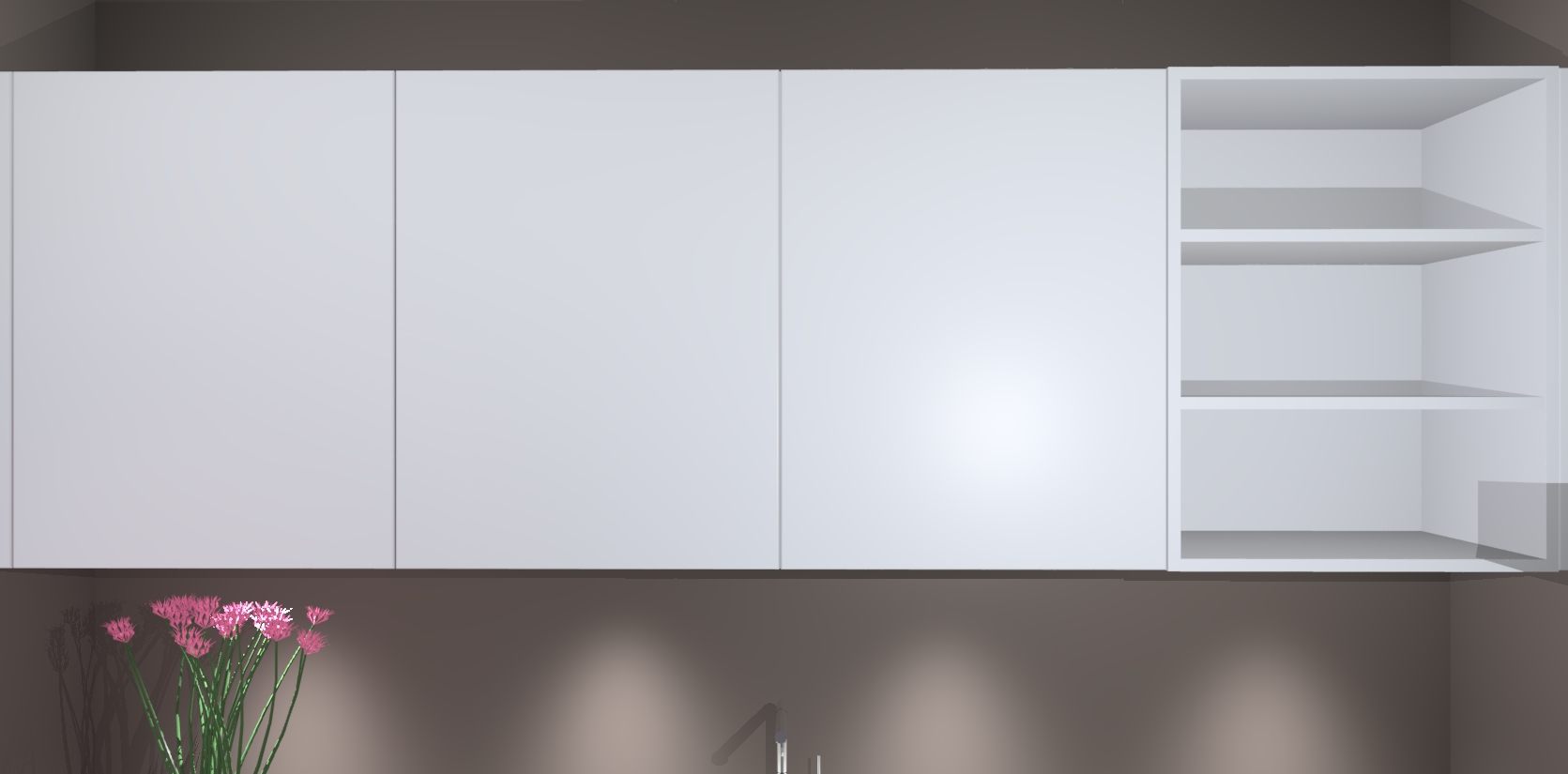 - Verticale greeplijst voor het greeploos openen van de hoge kast