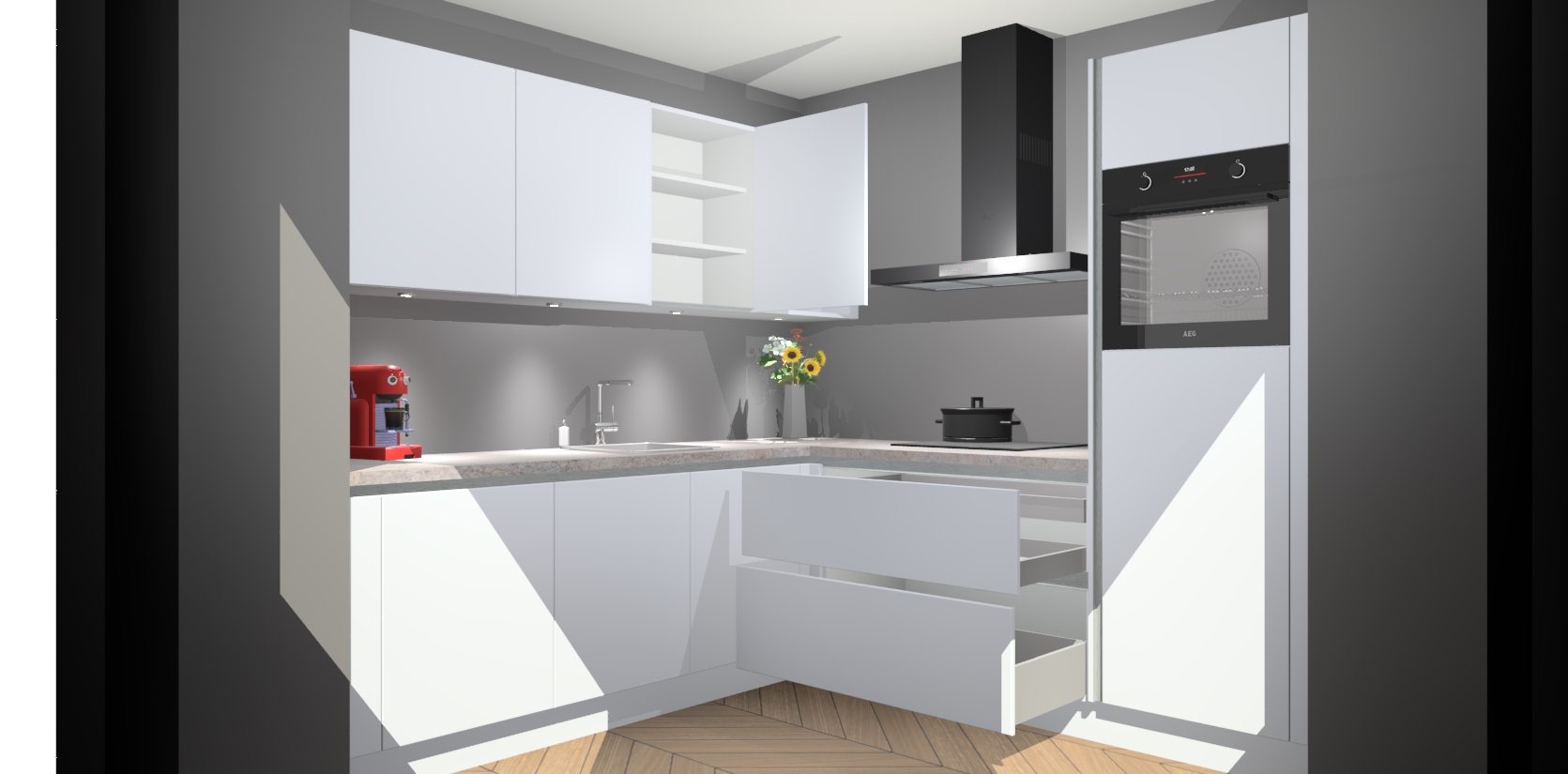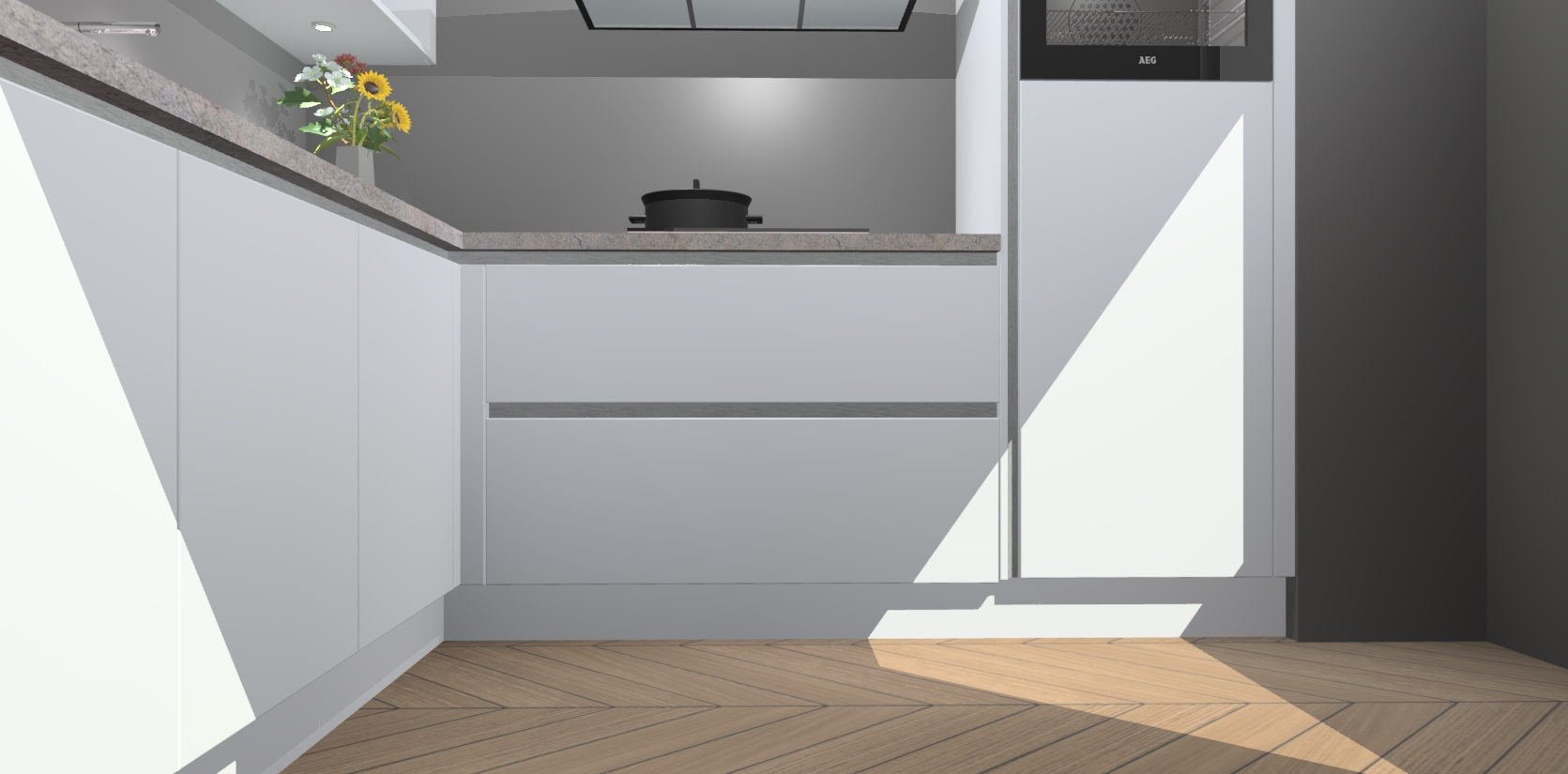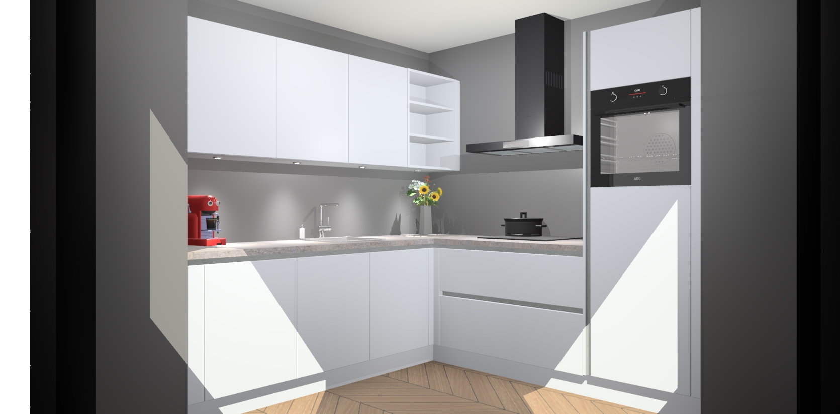 Met een modern, tijdloos design en ruime opslagruimte, zult u zich in no-time thuis voelen in uw nieuwe keuken. Uw leven wordt eenvoudiger met de soft-close deuren die voor het ultieme stille comfort zorgen - geen geluid dat u stoort terwijl u kookt. Ook is de keuken voorzien van 5 ingebouwde apparaten: een oven, inductie kookplaat, afzuigkap, vaatwasser en koelkast. Deze kunnen gemakkelijk na bestelling worden bijgewerkt naar AEG - waardoor uw luxe ervaring compleet is.