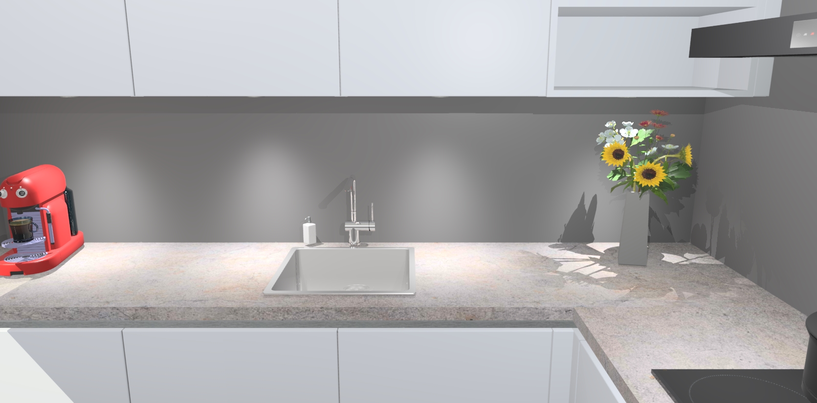 - De spoelbak is nog niet in gevreesd, dit dient tijdens het werk gedaan te worden
