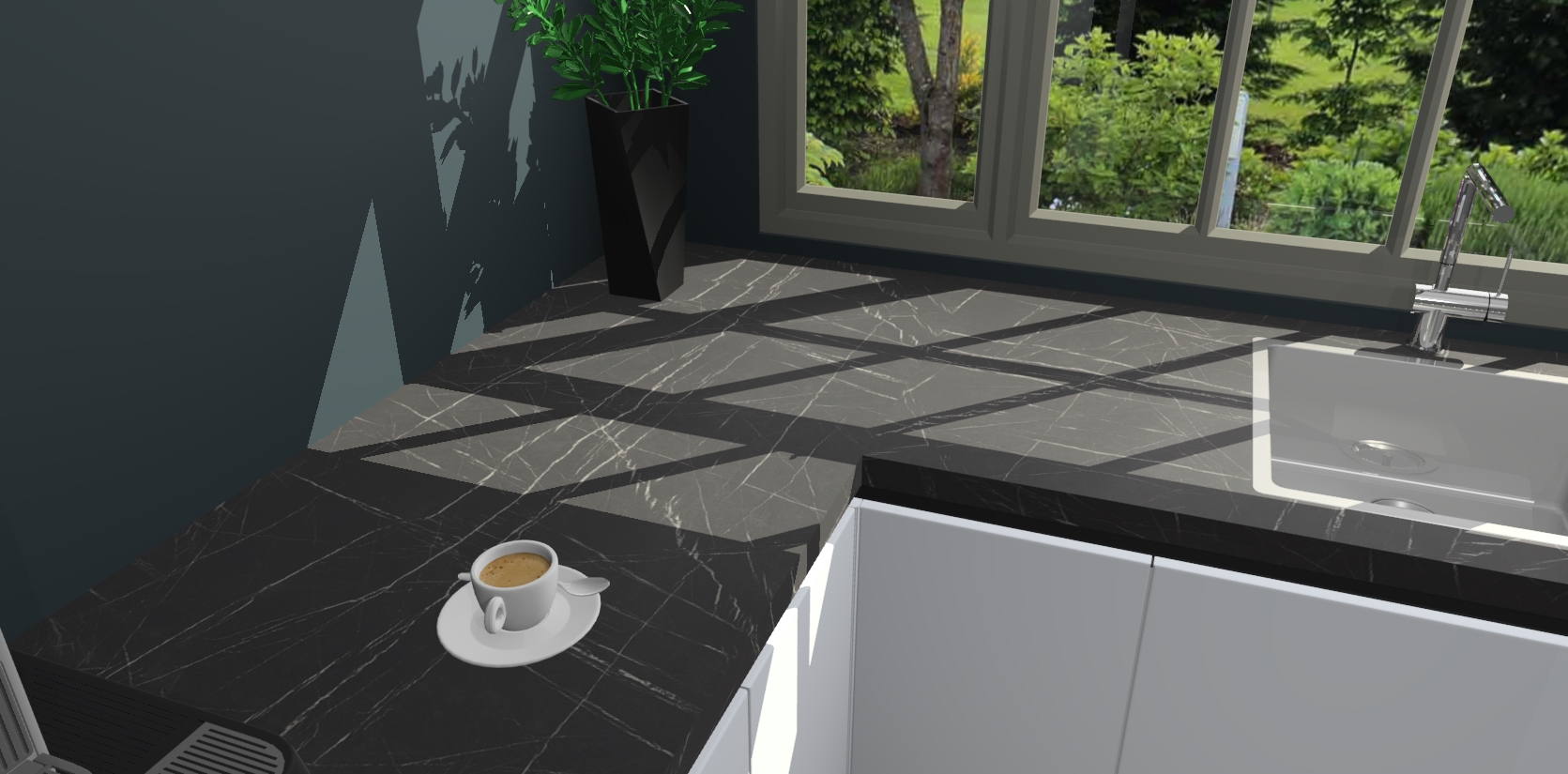 - Bij een hoekwerkblad zijn de hoeken in gevreesd en op maat gemaakt