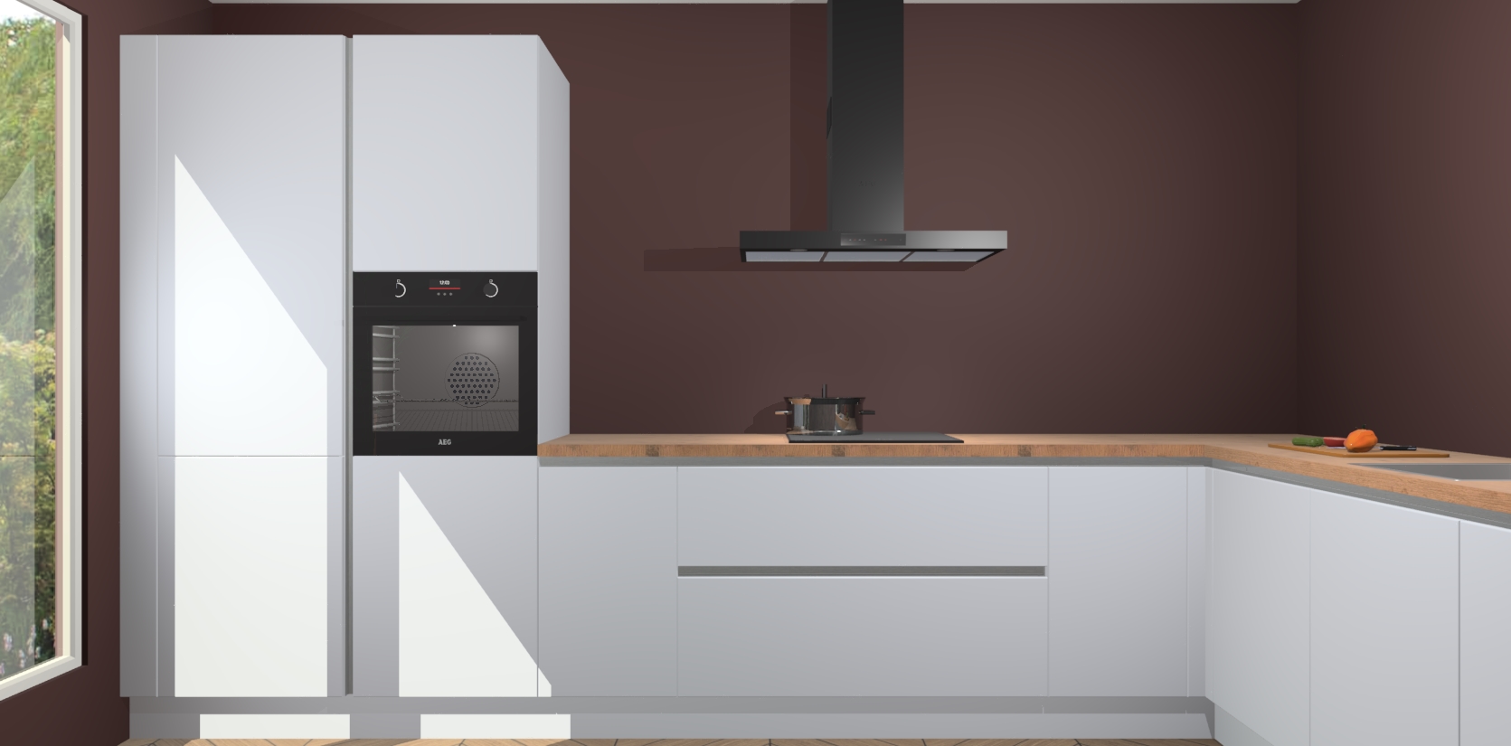 Met een modern, tijdloos design en ruime opslagruimte, zult u zich in no-time thuis voelen in uw nieuwe keuken. Uw leven wordt eenvoudiger met de soft-close deuren die voor het ultieme stille comfort zorgen - geen geluid dat u stoort terwijl u kookt. Ook is de keuken voorzien van 5 ingebouwde apparaten: een oven, inductie kookplaat, afzuigkap, vaatwasser en koelkast. Deze kunnen gemakkelijk na bestelling worden bijgewerkt naar AEG - waardoor uw luxe ervaring compleet is.