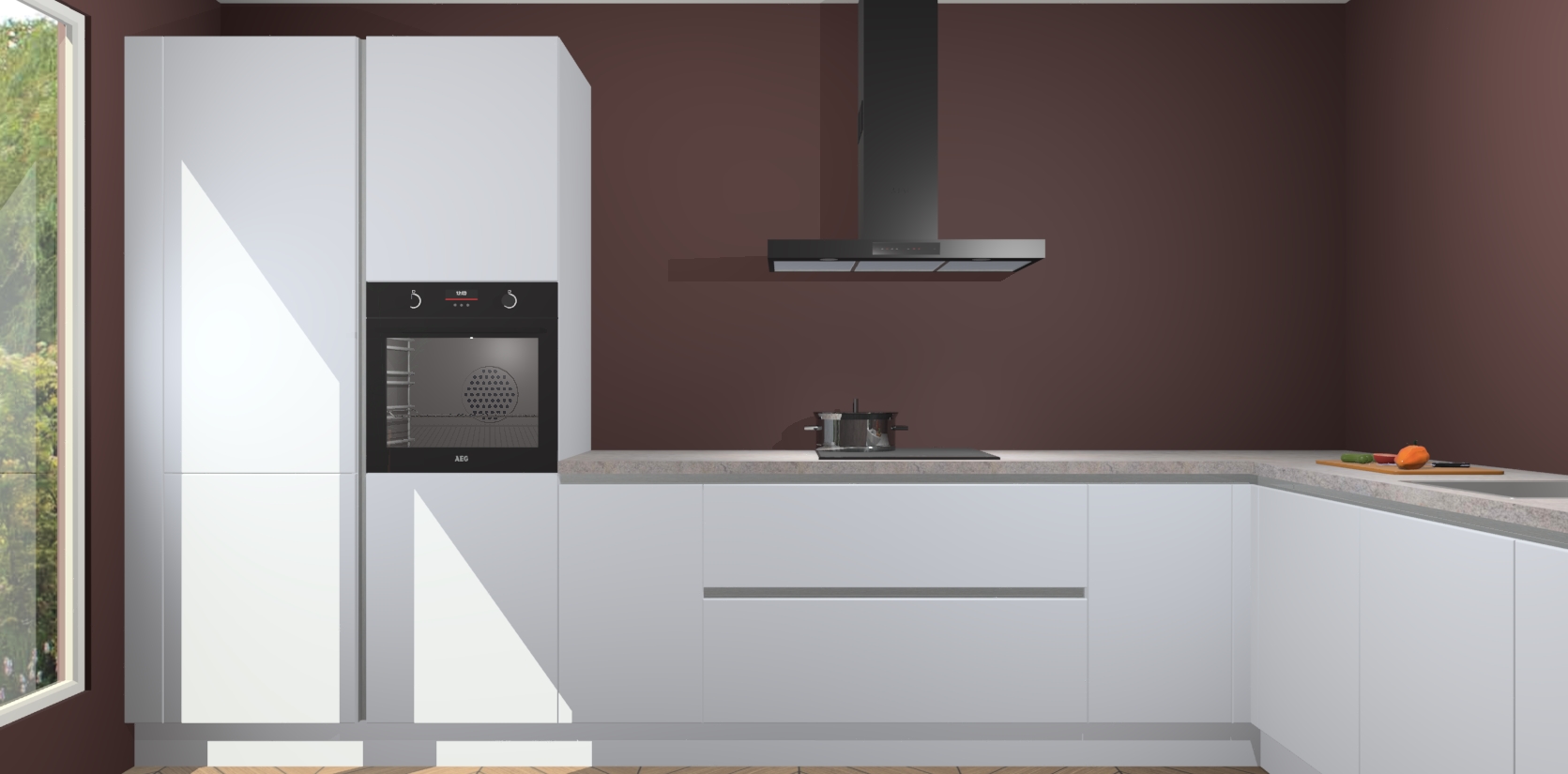 Met een modern, tijdloos design en ruime opslagruimte, zult u zich in no-time thuis voelen in uw nieuwe keuken. Uw leven wordt eenvoudiger met de soft-close deuren die voor het ultieme stille comfort zorgen - geen geluid dat u stoort terwijl u kookt. Ook is de keuken voorzien van 5 ingebouwde apparaten: een oven, inductie kookplaat, afzuigkap, vaatwasser en koelkast. Deze kunnen gemakkelijk na bestelling worden bijgewerkt naar AEG - waardoor uw luxe ervaring compleet is.