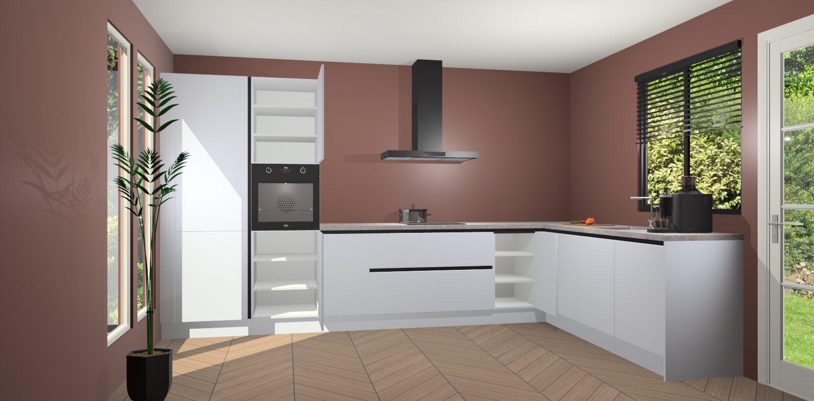 Met een modern, tijdloos design en ruime opslagruimte, zult u zich in no-time thuis voelen in uw nieuwe keuken. Uw leven wordt eenvoudiger met de soft-close deuren die voor het ultieme stille comfort zorgen - geen geluid dat u stoort terwijl u kookt. Ook is de keuken voorzien van 5 ingebouwde apparaten: een oven, inductie kookplaat, afzuigkap, vaatwasser en koelkast. Deze kunnen gemakkelijk na bestelling worden bijgewerkt naar AEG - waardoor uw luxe ervaring compleet is.