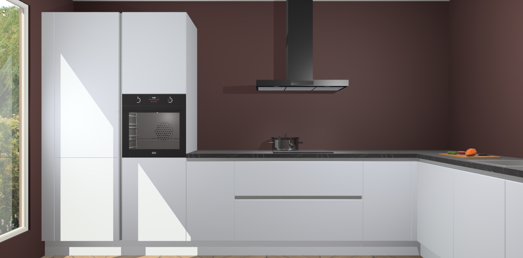 Met een modern, tijdloos design en ruime opslagruimte, zult u zich in no-time thuis voelen in uw nieuwe keuken. Uw leven wordt eenvoudiger met de soft-close deuren die voor het ultieme stille comfort zorgen - geen geluid dat u stoort terwijl u kookt. Ook is de keuken voorzien van 5 ingebouwde apparaten: een oven, inductie kookplaat, afzuigkap, vaatwasser en koelkast. Deze kunnen gemakkelijk na bestelling worden bijgewerkt naar AEG - waardoor uw luxe ervaring compleet is.