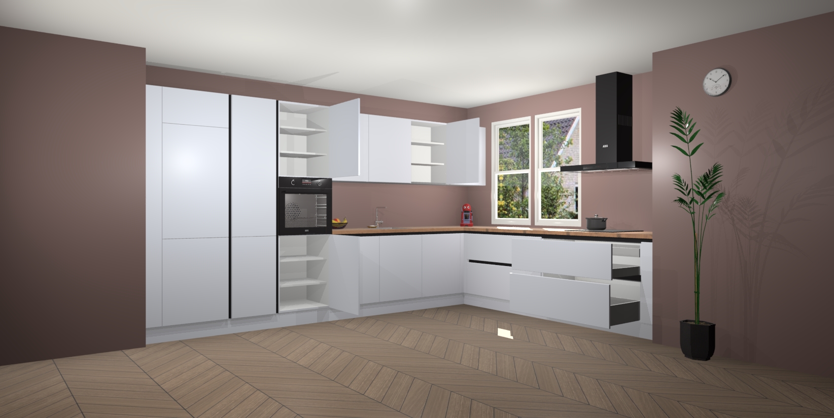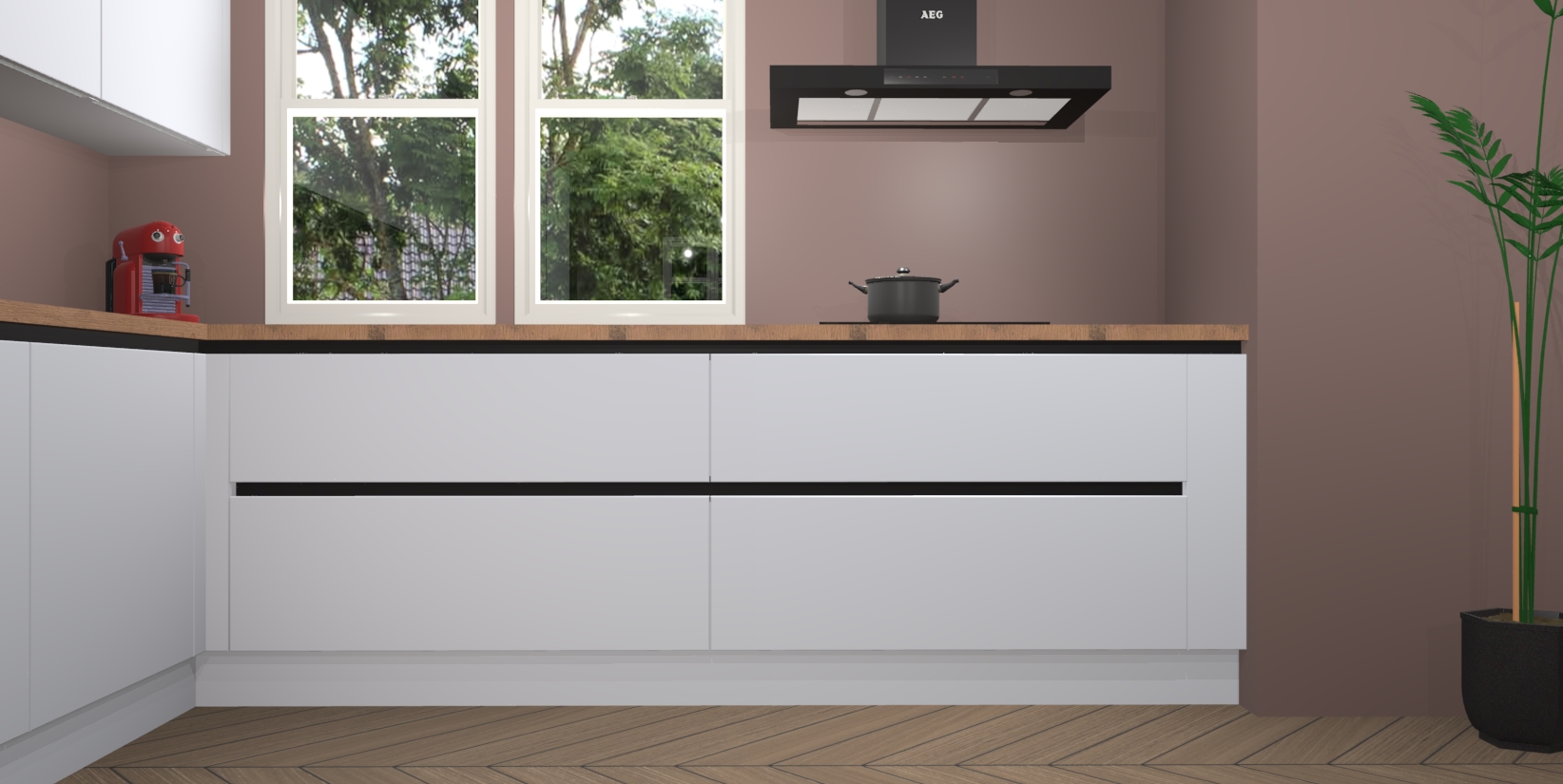 Inclusief plinten, stelpoten en werkblad