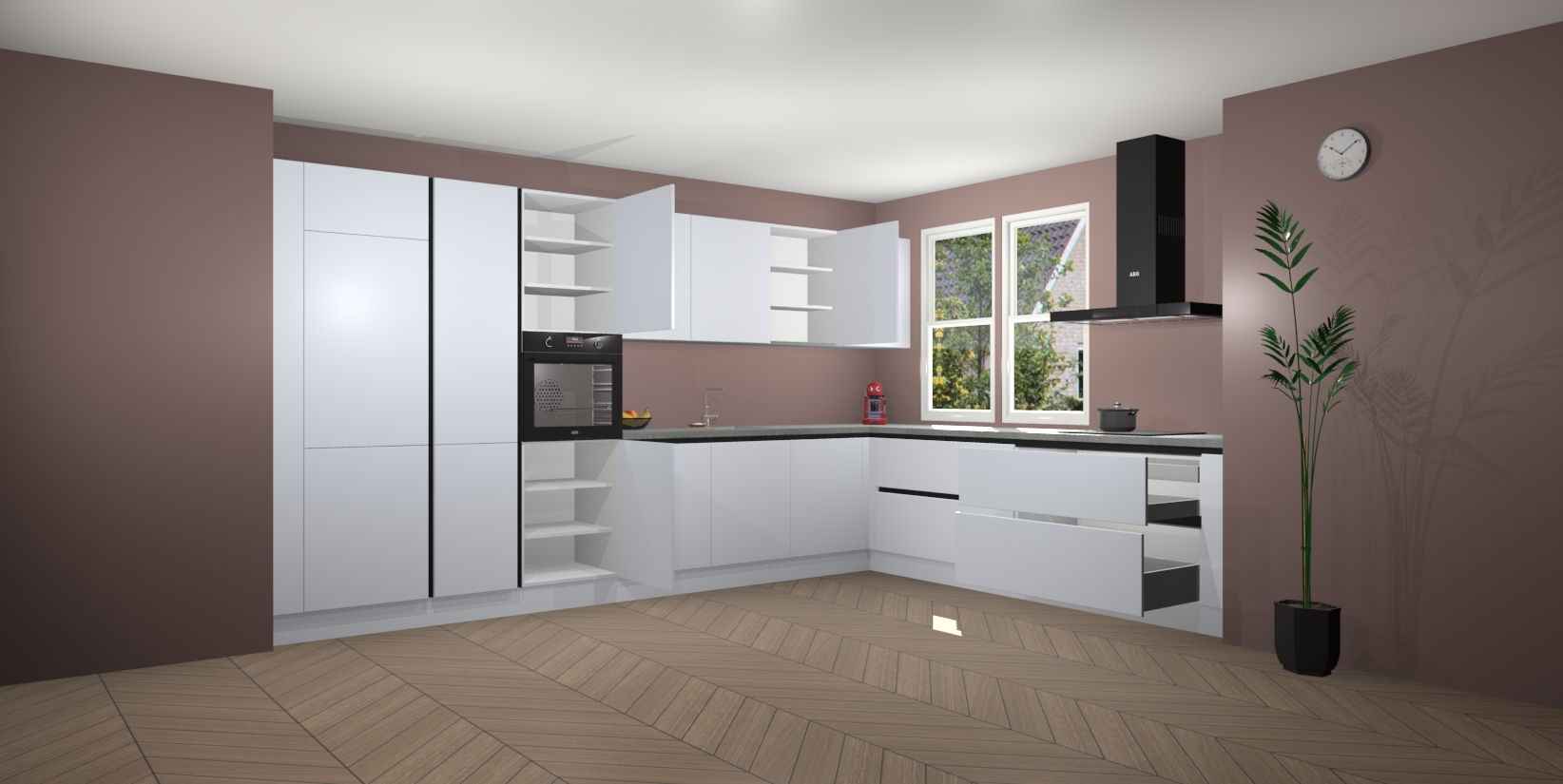 Door het stijlvolle, minimalistische design van de populairste keukens van dit moment te combineren met het gemak en de functionaliteit, heeft u veel opbergruimte en een opgeruimd werkblad. Met de extra bonus van softclose deuren biedt deze witte keuken een eigentijdse maar functionele omgeving voor al uw culinaire behoeften.