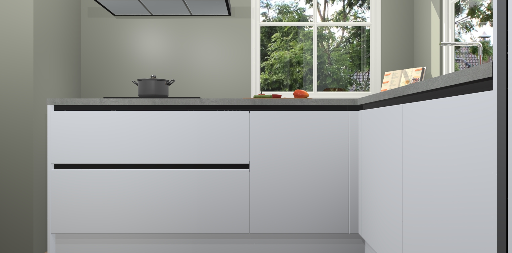 In deze box zijn alle kleuren verzameld van de deuren en werkbladen. Vraag de gratis kleurenbox aan en kijk thuis rustig verder!