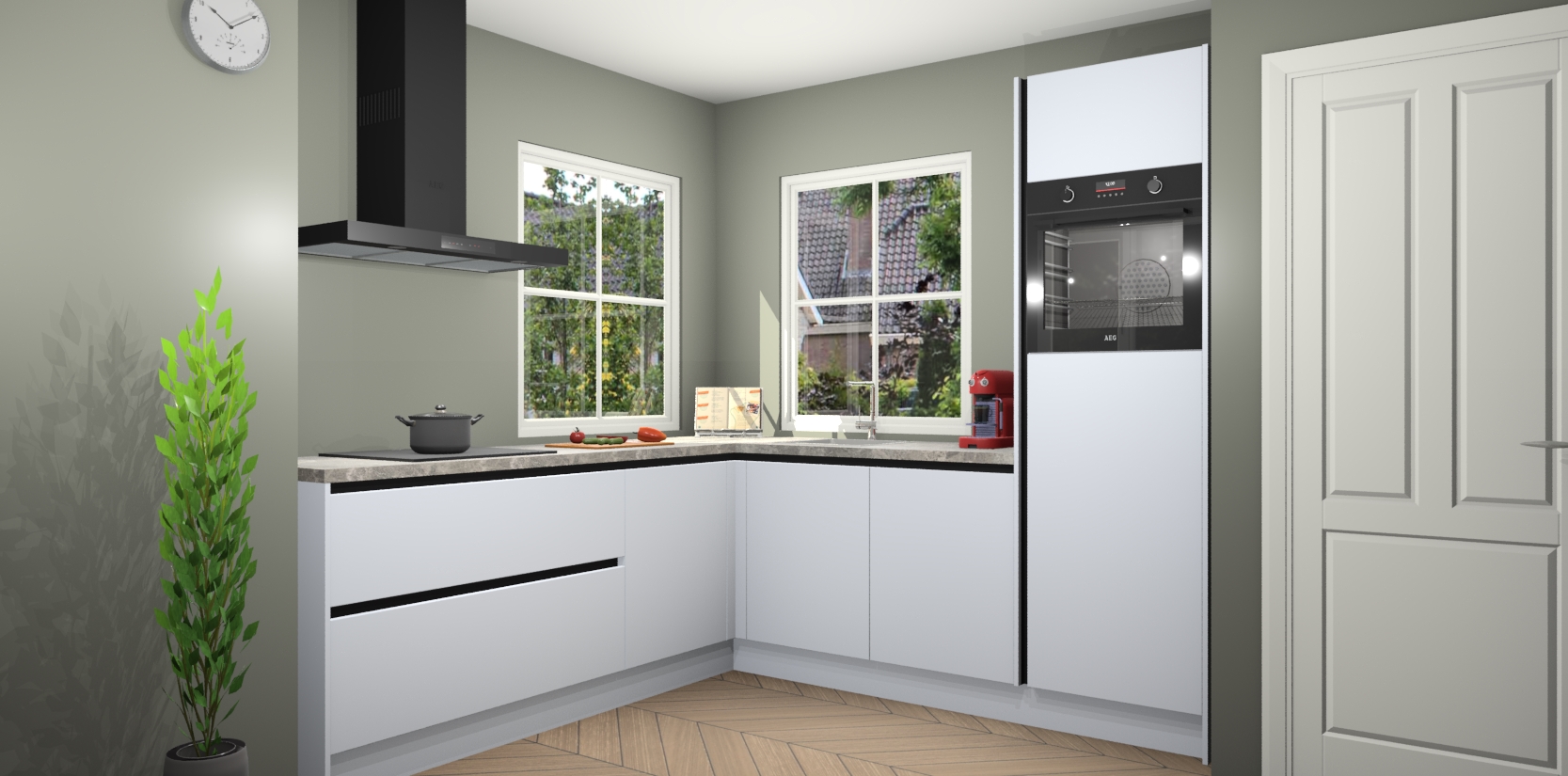 De Sneeuwwitte greeploze keuken Pai bevat vijf essentiële inbouwapparaten - een oven, inductiekookplaat, afzuigkap, vaatwasser en koelkast - zodat u er na levering meteen in kunt. Voor de slimme kopers die weten dat apparaten vaak het verschil kunnen maken tussen functioneel en luxueus, bieden we eenvoudige upgradeopties naar AEG, van oven naar combimagnetron na bestelling of naar een kookplaat met geïntrigeerde afzuiging. En met onze vaste lage prijs en snelle levering binnen zeven weken vanaf de orderbevestiging hoeft u zich geen zorgen te maken over verborgen kosten of lange levertijden die uw droomkeuken kunnen vertragen.
