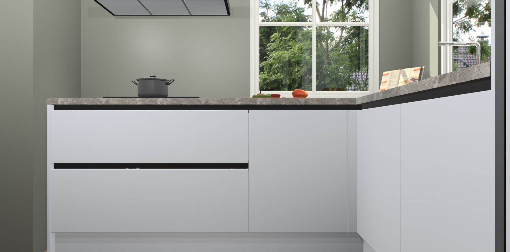 In deze box zijn alle kleuren verzameld van de deuren en werkbladen. Vraag de gratis kleurenbox aan en kijk thuis rustig verder!