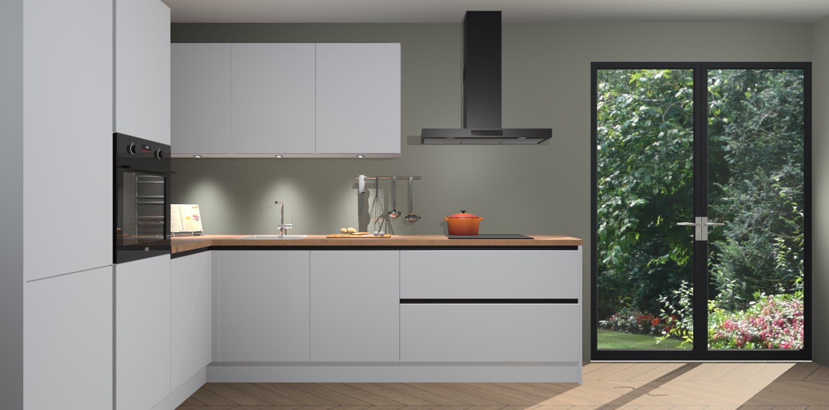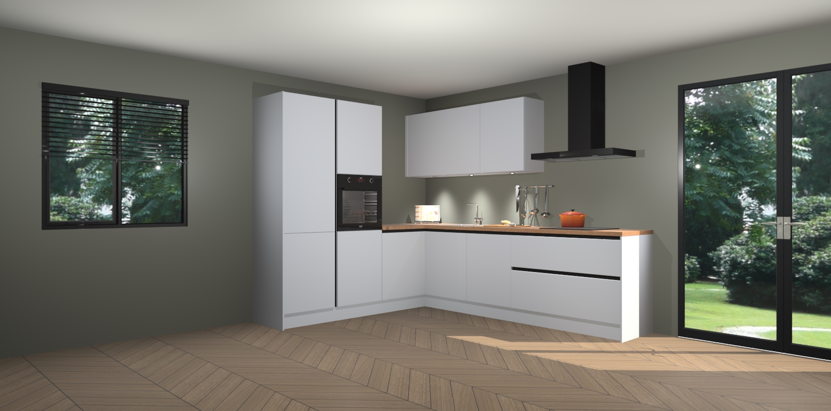 Maak kennis met de sneeuwwitte greeploze keuken Parla - de perfecte aanvulling voor uw moderne keuken! Ervaar tijdloos design, elegantie en een chique uitstraling met onze zwarte handgrepen, soft-close deuren en veel opbergruimte. Dit alles wordt aangeboden tegen een vaste lage prijs voor ongeëvenaarde Duitse keukenkwaliteit!