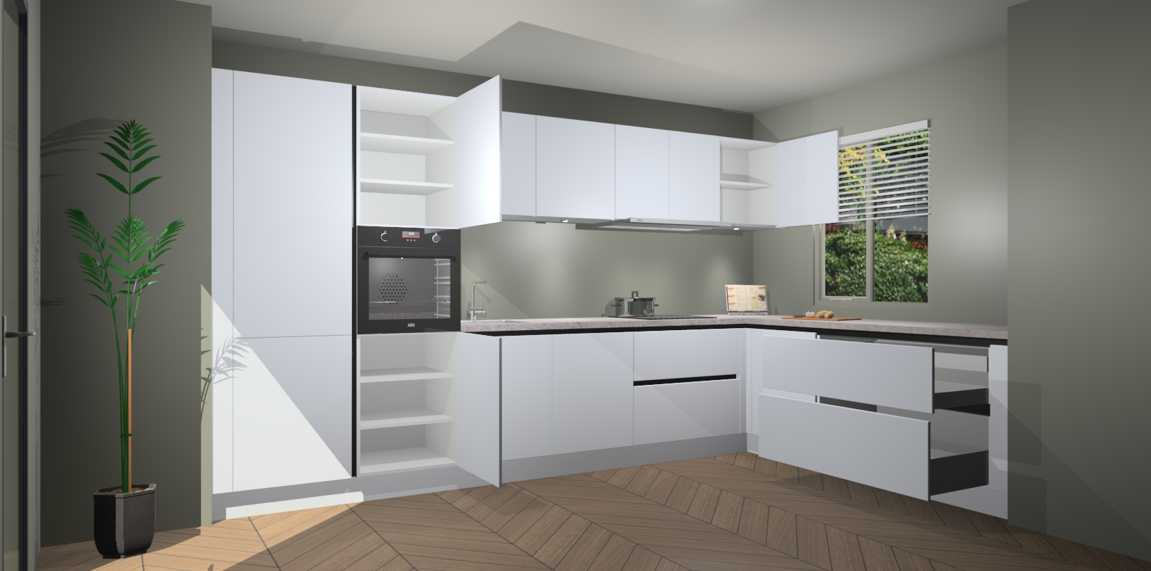 Inclusief plinten, stelpoten en werkblad