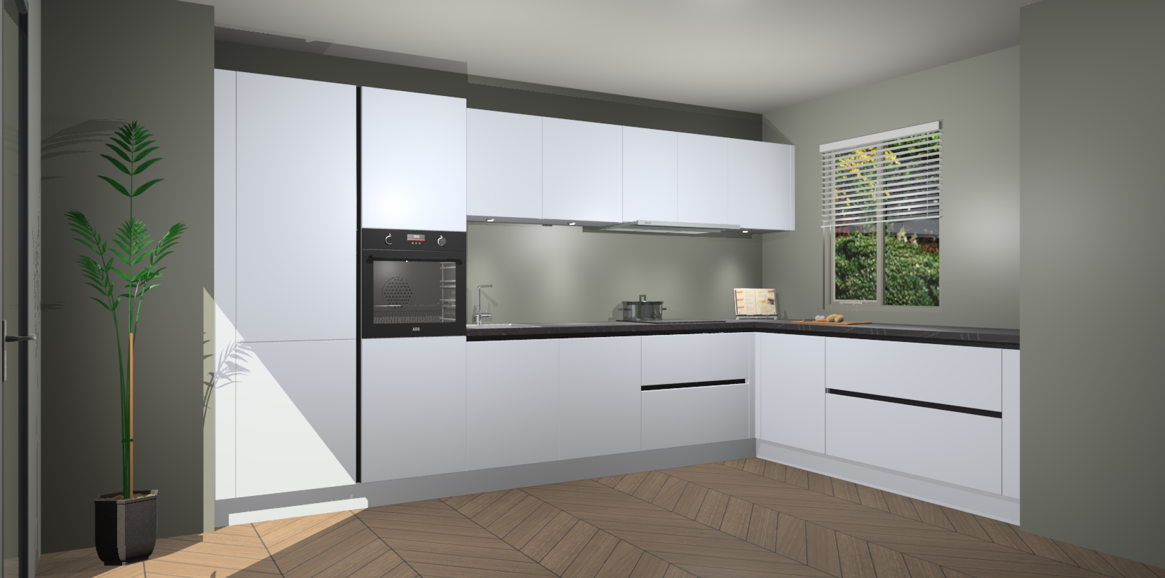 Verwelkom de natuurlijke warmte van de Sneeuwwitte greeploze keuken Petten in uw huis. Deze prachtige hoekkeuken met zijn moderne design en warme houten look geeft u meer dan genoeg opbergruimte om uw comfortabel te voelen in uw keuken. Geniet van soft-close deuren die al uw gasten het gevoel zullen geven dat ze zich in een luxueuze ruimte bevinden.