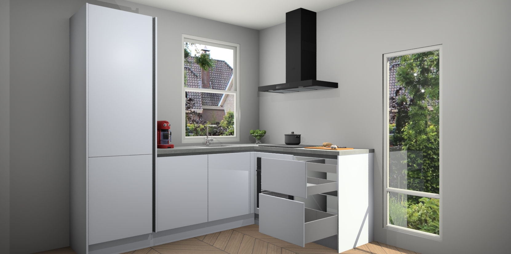De prachtige Sneeuwwitte greeploze keuken Phuket is de perfecte keuze als u op zoek bent naar een moderne hoekkeuken met alle luxe en comfort die u kunt verwachten! De uitstraling in het houtlook-design draagt bij aan de warme sfeer die u nu al voelt wanneer u er naar kijkt. Heeft u genoeg van ouderwetse keukens? Probeer dan direct deze moderne, mooie hoekkeukens en laat iedereen verbluft achter!