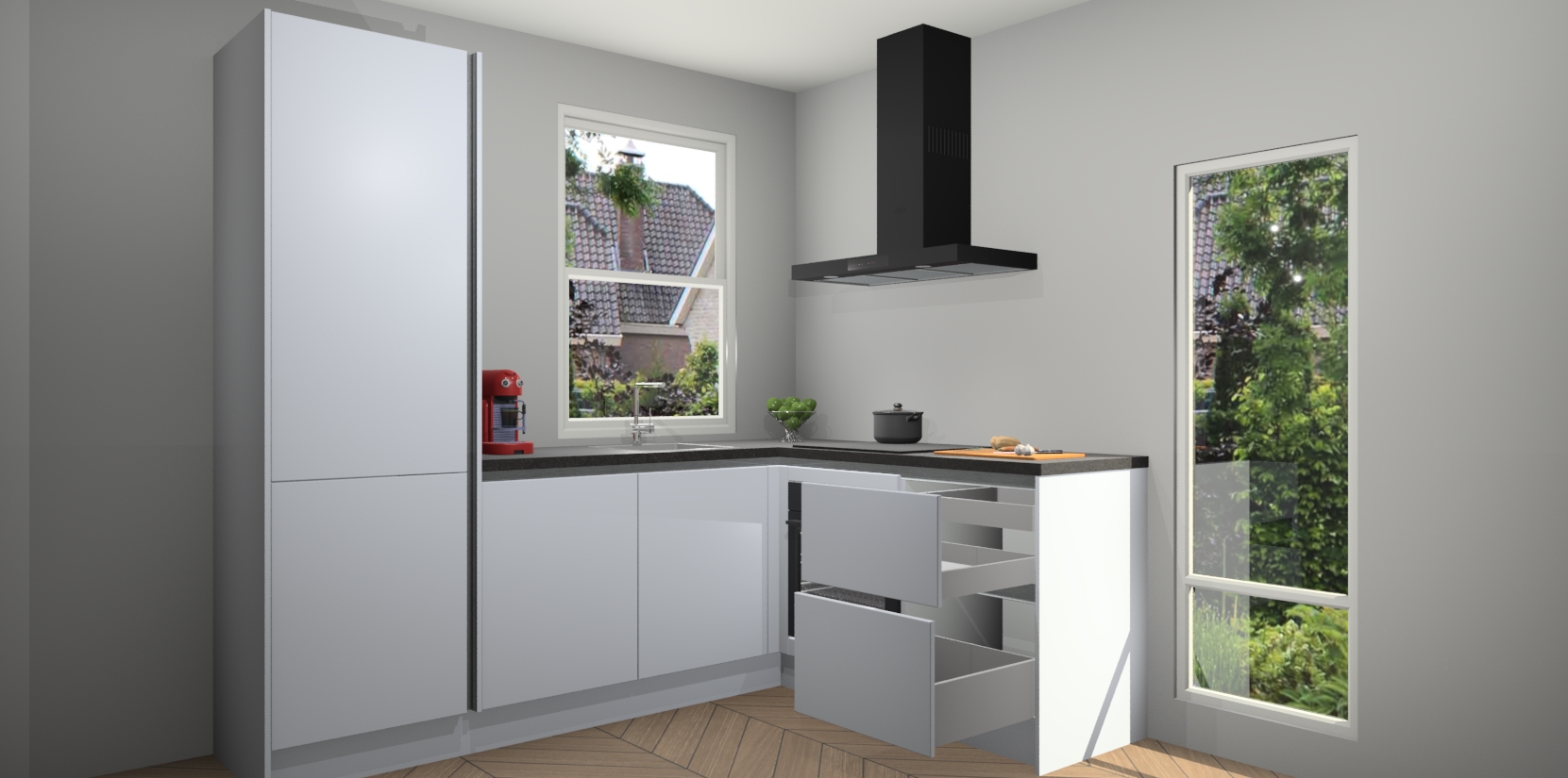 De prachtige Sneeuwwitte greeploze keuken Phuket is de perfecte keuze als u op zoek bent naar een moderne hoekkeuken met alle luxe en comfort die u kunt verwachten! De uitstraling in het houtlook-design draagt bij aan de warme sfeer die u nu al voelt wanneer u er naar kijkt. Heeft u genoeg van ouderwetse keukens? Probeer dan direct deze moderne, mooie hoekkeukens en laat iedereen verbluft achter!