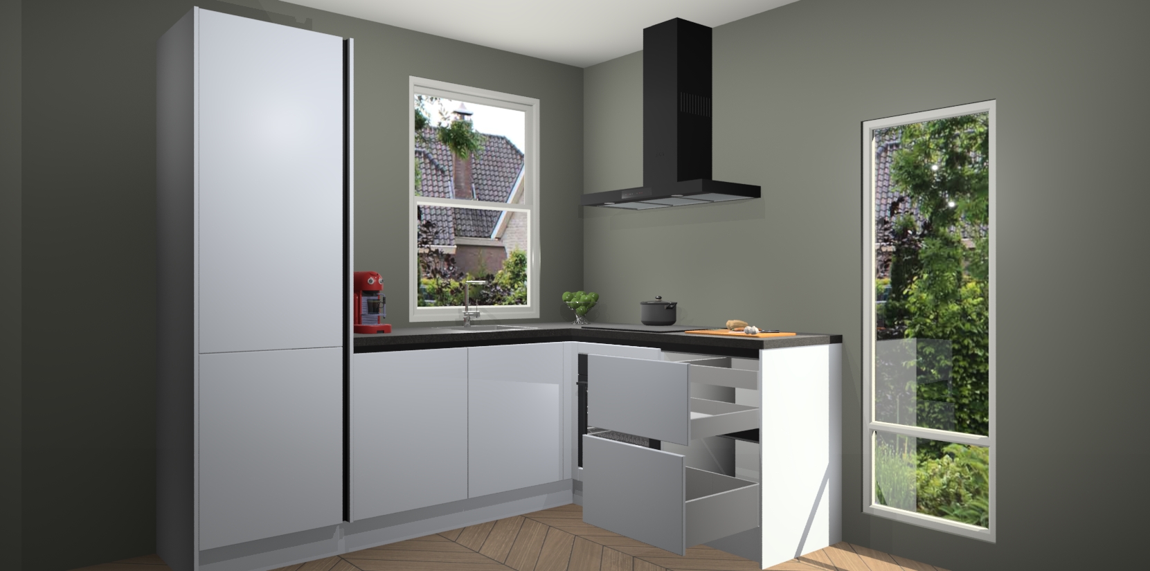 De prachtige Sneeuwwitte greeploze keuken Phuket is de perfecte keuze als u op zoek bent naar een moderne hoekkeuken met alle luxe en comfort die u kunt verwachten! De uitstraling in het houtlook-design draagt bij aan de warme sfeer die u nu al voelt wanneer u er naar kijkt. Heeft u genoeg van ouderwetse keukens? Probeer dan direct deze moderne, mooie hoekkeukens en laat iedereen verbluft achter!