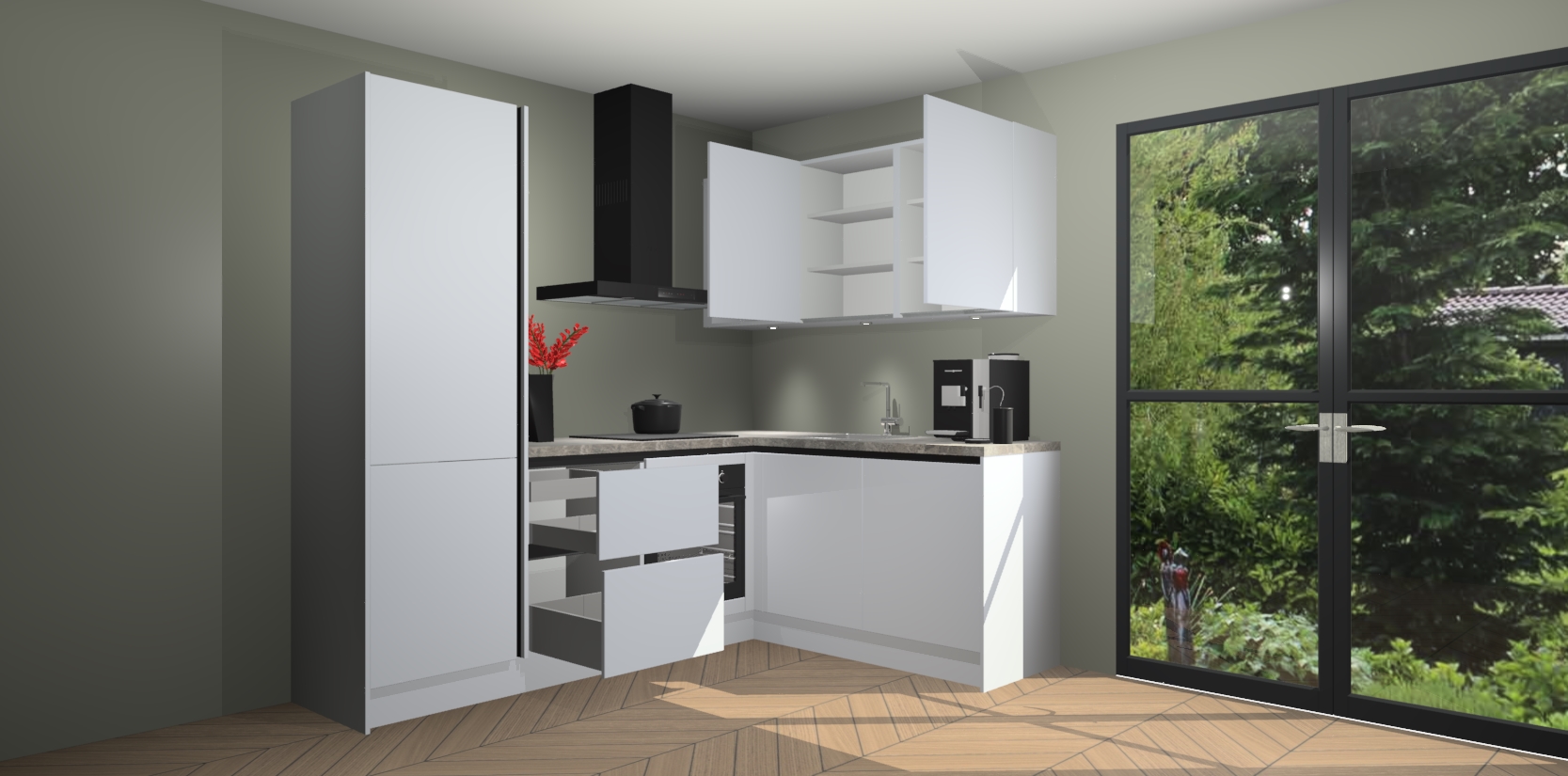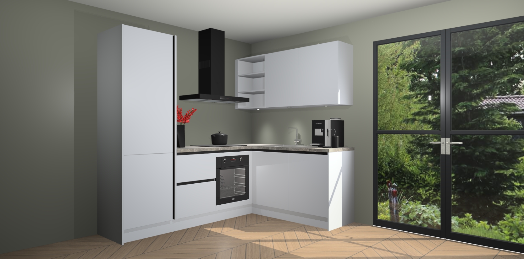 Wauw, dit is de Sneeuwwitte greeploze keuken Pilsen! U kunt gerust zeggen dat u elegantie combineert met functionaliteit met deze keuken. Met een modern en chique ontwerp is de keuken precies wat u nodig heeft om uw ruimte te verfraaien. De binnenzijde van de kasten is in dezelfde donkere kleur als de buitenzijde voor een uniforme look, compleet met softclose-kasten die stil sluiten.